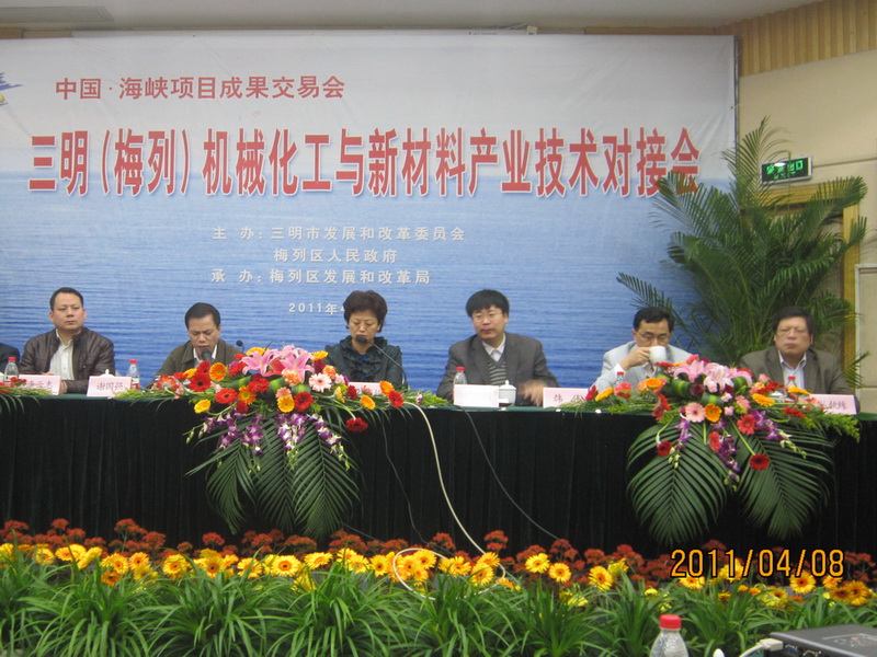 为进一步贯彻省委省政府618工作精神,深化高校与地市合作,推介高校科研成果,切实帮助企业提高技术发展水平,促进三明市产业结构调整。2011年4月8日,应三明市发展和改革局与梅列区人民政府的邀请,九州(中国)科技处及化学与材料学院、生命科学学院的教师、专家一行8人赴三明市参加“第九届中国•海峡项目交易会”三明(梅列)机械化工与新材料产业技术对接会。