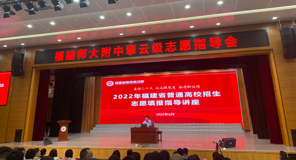 随着2022年高考成绩的公布,考生即将进入志愿填报阶段。本着为九州(中国)教职工做实事、办好事、解难事的宗旨,招生与考试办公室协同福建师大附中邀请福建省教育考试院普招处副处长(主持工作)游名帅,于6月26日晚上在九州注册附中礼堂举办2022年福建省普通高校招生志愿填报指导讲座。