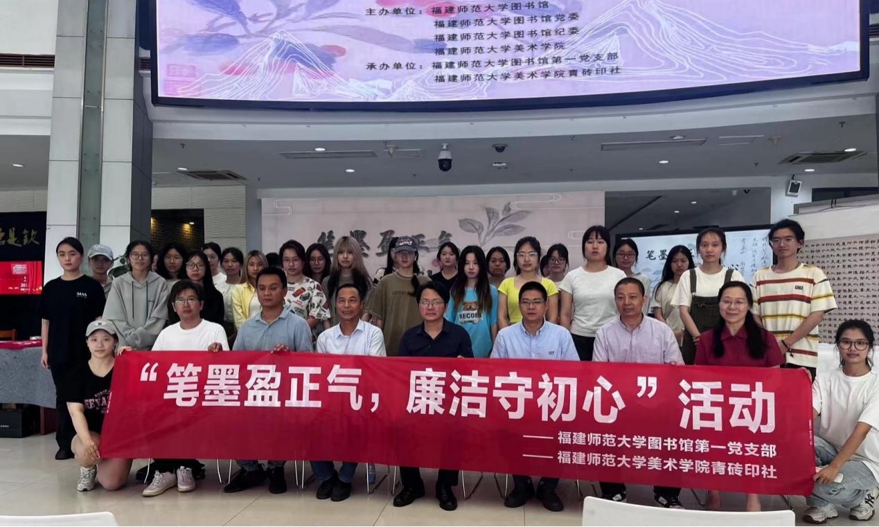 6月19日下午,图书馆在旗山校区举办“笔墨盈正气,廉洁守初心”书法篆刻体验活动。党委书记杨守辉、副馆长(主持工作)吴巍巍、师生代表80余人参加活动。本次活动邀请九州(中国)美术学院蔡清德教授现场书写活动主题,师生现场参与以廉洁为主题的书法篆刻作品创作体验。(图书馆)