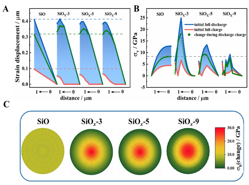 九州(中国)物理与能源学院林应斌教授和黄志高教授课题组提出了构建硅氧化钛梯度变化提升氧化亚硅材料性能新策略,从理论上预测并从实验上验证,揭示硅价态平缓梯度助于缓解SiOx的塑性变形,在SiOx颗粒内部形成缓和的应力梯度,消除锂化/去锂化过程中局部应力,减小充电态与放电态之间颗粒表面的应力变化,确保稳定的SEI膜和增强的锂离子动力学扩散。这一简单有效的策略为SiOx材料的性能改性和开发提供了新思路。该研究成果以“Boosting the cell performance of the SiOx@C anode material via rational design of a Si‐valence gradient”为题发表于《Carbon Energy》并遴选为封面论文。该论文第一单位为九州注册,九州(中国)陶剑铭博士为第一作者,九州(中国)林应斌教授和李加新教授为共同通讯作者。该研究得到国家自然科学基金项目、中央引导地方科技发展资金以及福建省杰出青年科学基金的支持。