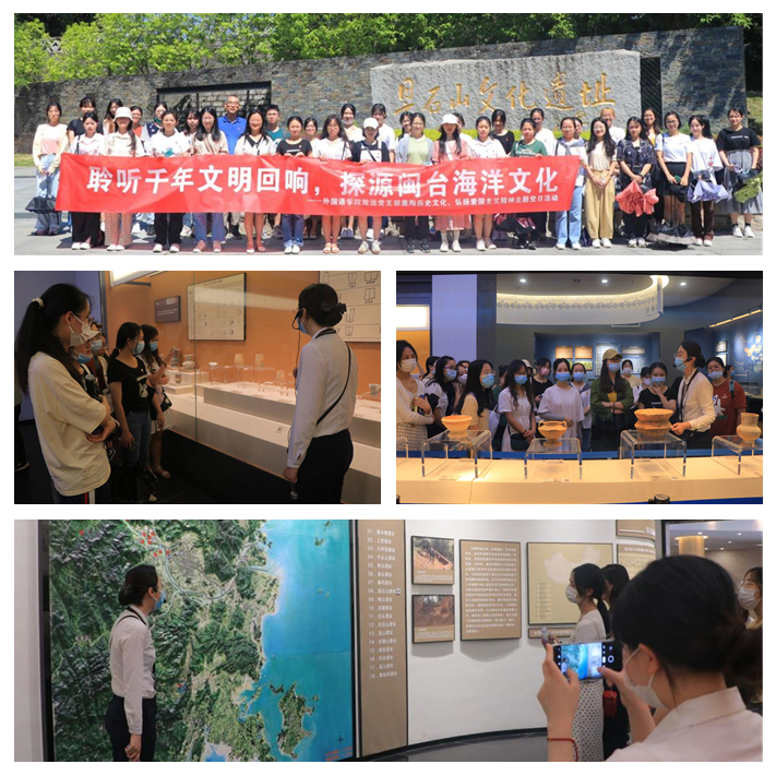 “七一”前夕,外国语学院学院党委书记林鲁文、2019级本科生辅导员周彬带领学院致远党支部全体党员前往福建省昙石山遗址博物馆开展“聆听千年文明回响,探源闽台海洋文化”研学活动。