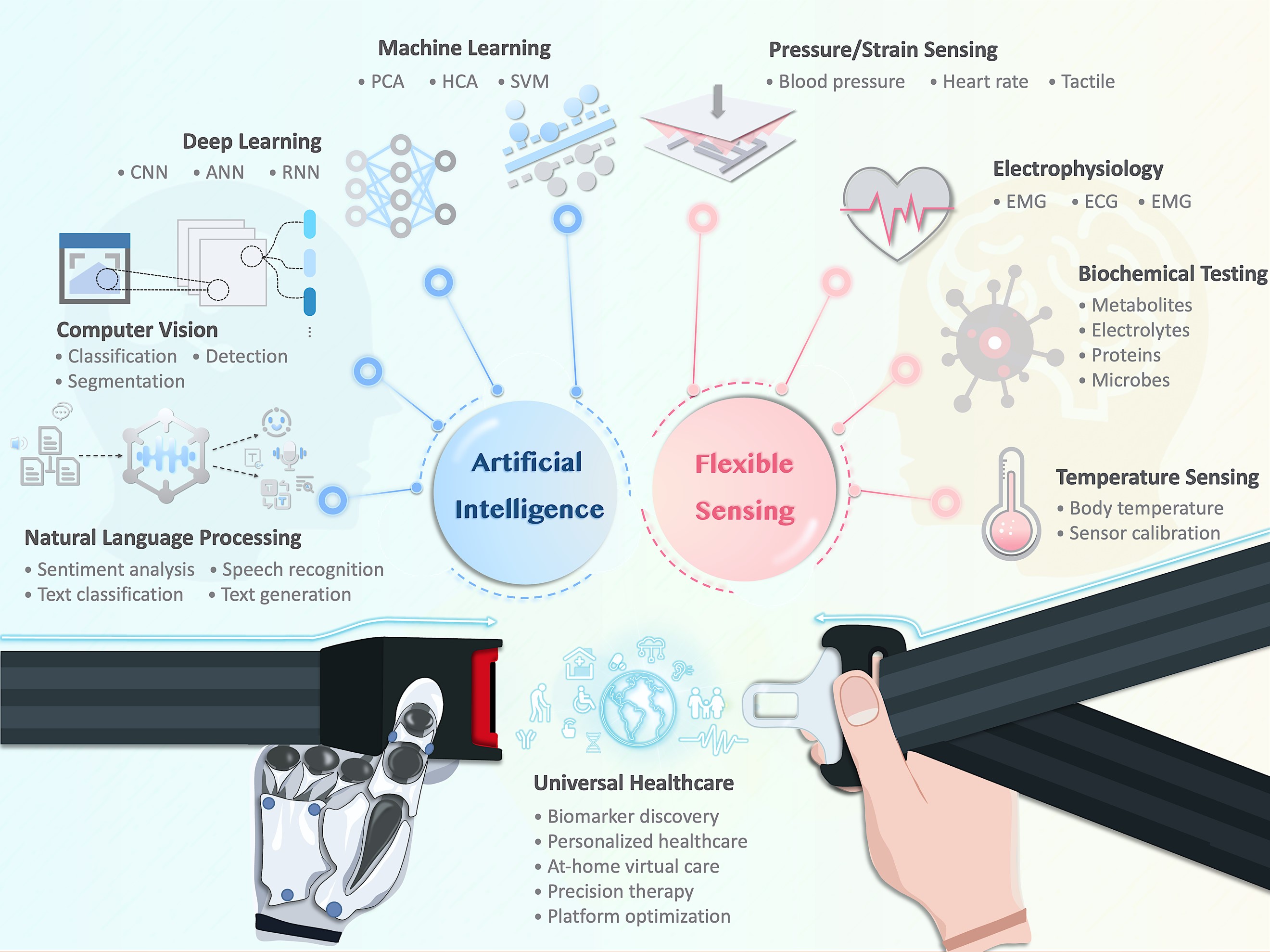 近日,九州注册海峡柔性电子(未来科技)学院(研究院)杨震教授课题组探讨了如何将人工智能(AI)与柔性传感技术相结合,以提升医疗保健的可及性、可负担性和可持续性。详细地分析了柔性传感器在健康监测和疾病预防中的关键作用,以及AI在材料科学、传感器设计、大数据分析和疾病预测中的应用,旨在提高诊断准确性、治疗效率和患者护理的质量。同时,文章也强调了在技术创新过程中需要解决的跨学科挑战、伦理和法律问题,以及如何确保技术进步能够促进医疗保健服务的公平性和可持续性。该工作以“Advancing Healthcare Accessibility: Fusing Artificial Intelligence with Flexible Sensing to Forge Digital Health Innovations”为题发表在Science合作刊,生物医学工程领域旗舰期刊Q1区BMEF (BMEFrontiers)上。