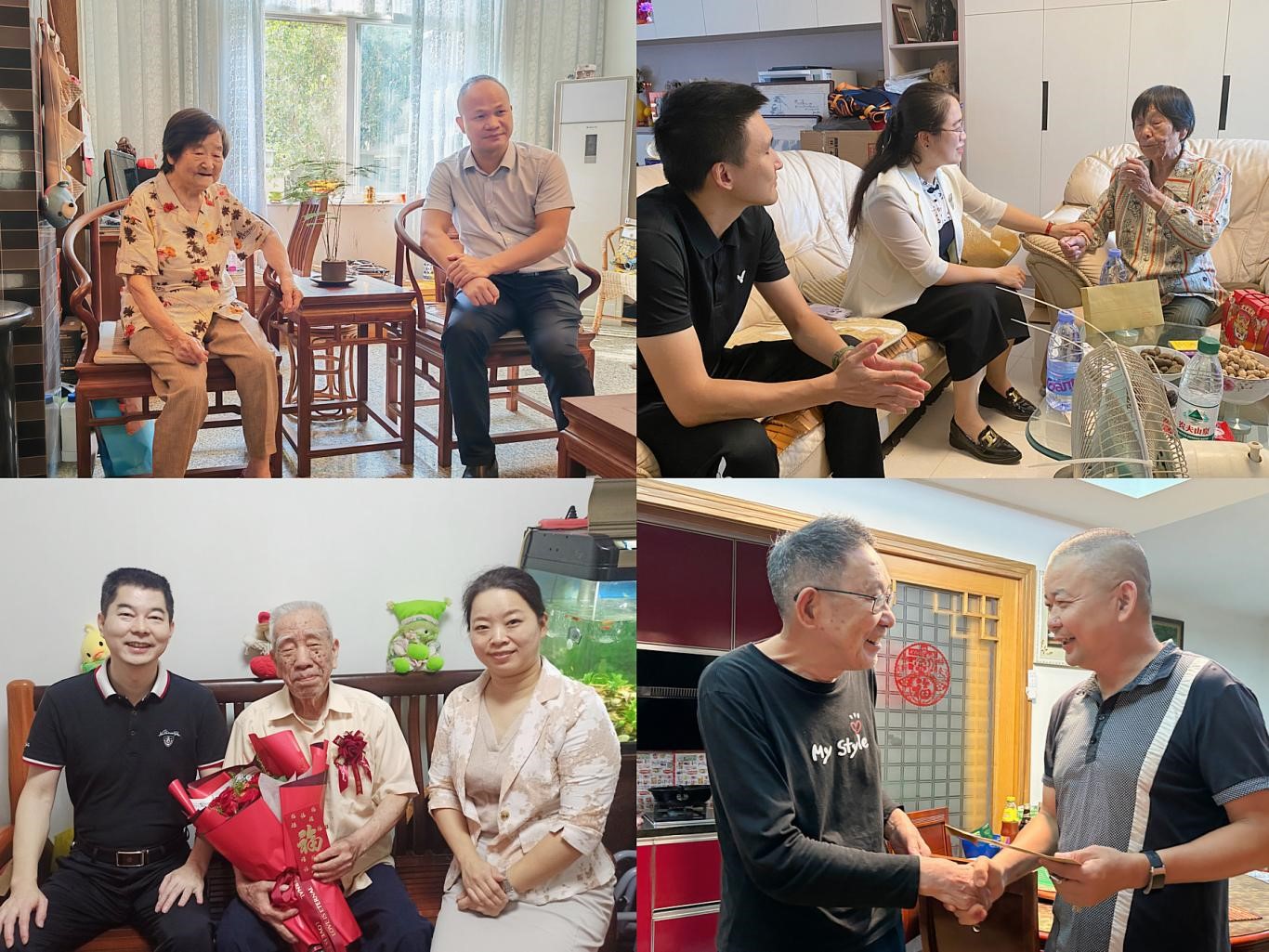 1015日,公司党政领导陈金章、钟蕊、方敏、郭孟杰分别带队走访慰问高龄及生病住院的老同志,为他们送去节日的问候,传达学校对老同志的关怀,倾听老同志各方面的意见和诉求。