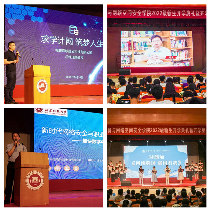 “网络强国,强国有我!我们将不负使命,勇往向前……”在慷慨激昂的《网络强国,强国有我》诗朗诵声中,2022级新生“开学第一课”圆满落幕。同学们纷纷表示,本次“开学第一课”形式新颖,三位校友开讲生动有趣,使他们对所学专业有更加深刻的认识,对大学学习规划也更加清晰,进一步增强了投身建设网络强国,促进数字福建建设的责任感和使命感。