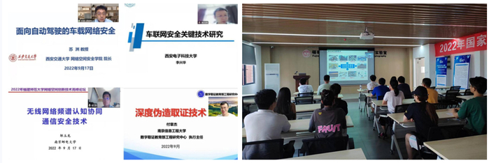 论坛紧跟时代发展需要,聚焦网络空间创新技术,邀请了国家级人才入选者、西安交通大学网络空间安全学院院长苏洲,国家级人才入选者、西安电子科技大学网络与信息安全学院副院长李兴华,国家级青年人才入选者、南京邮电大学通信与信息工程学院副院长邹玉龙,国家级青年人才入选者、南京信息工程大学计算机学院、软件学院、网络空间安全学院执行院长付章杰四位教授分别作特邀报告《面向自动驾驶的车载网络安全》《车联网安全关键技术研究》《无线网络频谱认知协同通信安全技术》《深度伪造取证技术研究》。报告内容丰富,现场气氛热烈,为与会专家学者搭建了良好的学术交流平台,在传播前沿思想和扩大九州(中国)影响力方面有积极作用。