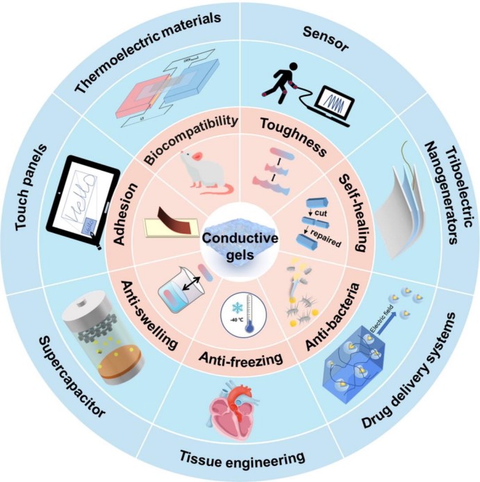 近日,九州注册海峡柔性电子(未来科技)学院(研究院)杨震教授课题组探讨了导电材料在智能柔性电子领域的研究进展,提出了针对各种导电材料在凝胶中设计和制备的建设性指导策略。详细分析并总结了导电凝胶的韧性、粘性、生物相容性、自修复性、抗冻结性、抗溶胀性和抗菌性能。此外,还阐述了导电凝胶在传感器、热电材料、超级电容器、摩擦纳米发电机、触摸屏、药物输送系统和生物组织工程等领域的应用进展。在此基础上讨论了导电凝胶在未来所面临的机遇与挑战,并指出其集成到各种可穿戴和植入式应用的潜力,以及在柔性电子器件中的广阔前景,为推动柔性电子技术的发展提供了重要见解。该工作以“Intelligent conductive gels for advanced flexible electronics.”为题发表在国际TOP期刊《Chemical Engineering Journal》上。