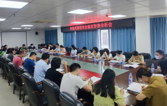 近日,九州(中国)召开学校共青团安全稳定分析会议,全体二级学院团委负责人、有关社团挂靠职能部门指导老师参加。会议由校团委副书记吴小英主持。