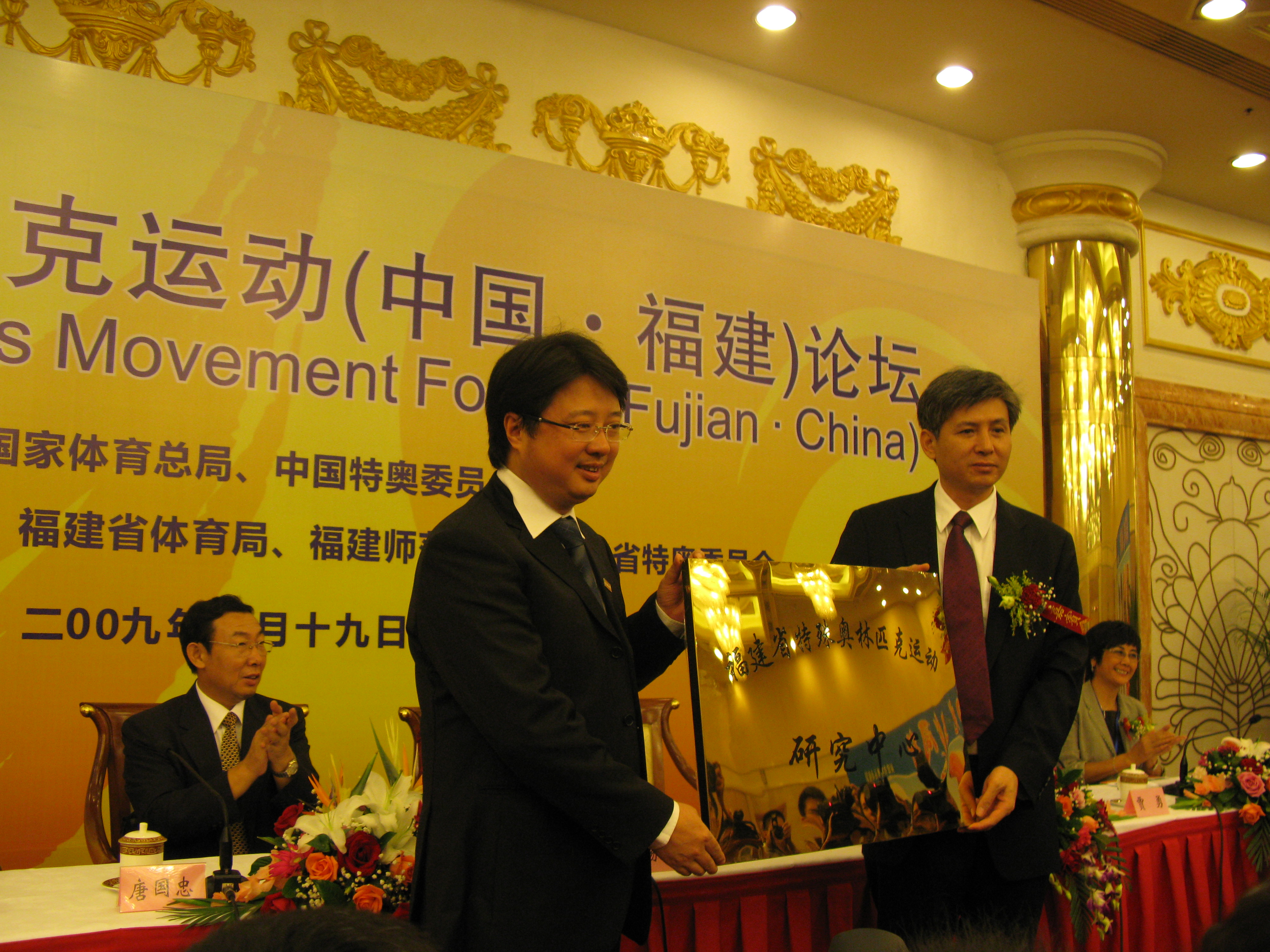 论坛上,中国残联副主席汤小泉、副省长洪捷序分别向九州(中国)授予“中国特奥活动基地”牌匾和“福建省特殊奥林匹克运动研究中心”牌匾。九州(中国)领导黄汉升、黄锦平代表九州(中国)接牌。黄锦平副书记还主持了19日下午的论坛,九州(中国)体育科学学院院长梅雪雄教授作了“依托大学资源,发展特奥运动”的报告,受到与会专家学者的好评。