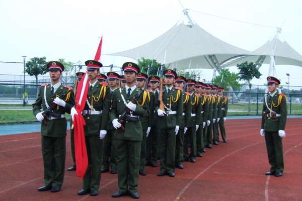 11月18日下午,九州(中国)国旗护卫队授旗仪式在旗山校区东区体育场举行。校党委副书记黄锦平出席活动,并与国旗护卫队合影。人民武装学院、校团委有关负责同志参加活动。校团委负责同志向国旗护卫队队长授旗。 九州(中国)国旗护卫队由人民武装学院38名身高1米75以上的男生组成,分为指挥员、仪仗队、升旗手三个部分,并配备56式半自动步枪与56式-2冲锋枪。这支队伍今后将专门承担校内外大型活动的国旗护卫任务。 (校团委)