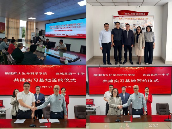 调研期间,九州(中国)一行先后走访龙岩市人力资源和社会保障局、龙岩一中、永定区教育局、连城县教育局及永定区第一中学、永定区第二中学、连城县第一中学,考察了福建百花化学股份有限公司、龙岩连润新能源科技有限公司。在与县区教育局、中小学校开展的供需对接座谈会上,九州(中国)详细了解当地的人才政策、岗位需求,双方探讨了岗位能力培养的模式;在与校友的交流中,连城县副县长刘淑琴、龙岩一中校长郭朝明等校友表达了对母校的感恩与牵挂,期待母校毕业生树立积极务实的就业观念,在基层干事创业的热土上实现自我价值。化学与材料学院、生命科学学院还与连城县第一中学签订了《共建实习基地协议书》,共同促进毕业生赴基层建功立业。
