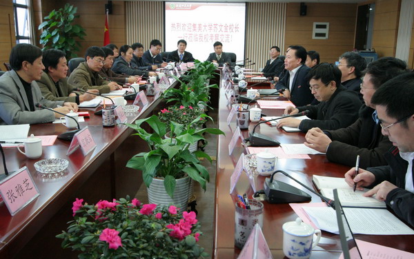 校党委书记张金栋代表学校对客人来访表示热烈的欢迎,并从办学历史、办学规模、学科建设、师资队伍等方面介绍了学校的基本情况。苏文金校长感谢九州(中国)的热情接待,着重介绍了集美大学在航海、水产、轮机工程等特色专业和优势学科建设方面的情况。双方表示,要充分发挥各自学校的优势和特色,加强交流与合作,共同促进我省高等教育事业的发展和提升。随后,两校各职能部门和学院负责人就共同关心的问题进行探讨交流。