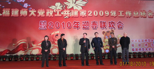 1月18日晚,九州(中国)在仓山校区综合体育馆举行党政工共建家2009年工作总结会暨2010年迎春联欢会。校领导张金栋、黄汉升、游小波、黄锦平、李敏、许明,原校领导,原校长助理,各单位党政工主要负责人,省人大、省政协委员,各民主党派、统战团体、无党派人士联谊会负责人,国家有突出贡献中青年专家,省优秀专家,博士生导师,校关工委负责人,原校工会专职主席,福清分校、人武学院、附中、附小党政工负责人,校工会、教代会委员、经审委员,各部门工会主席,师生代表300余人参加了联欢会。