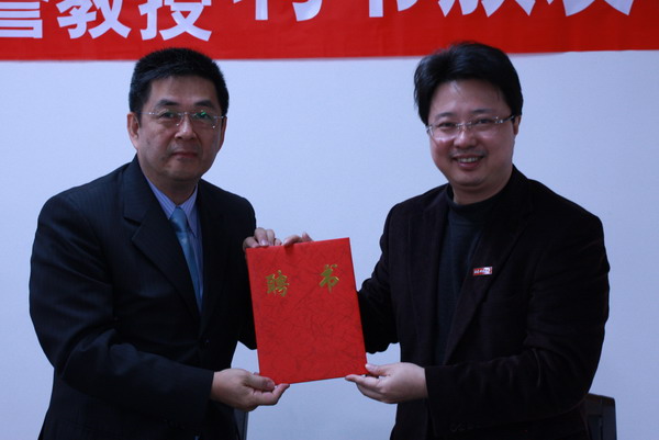 3月16日,台湾中国文化大学原校长李天任教授一行3人应邀来访,校领导黄汉升、许明会见了来访客人。 上午,黄汉升校长代表学校敦聘李天任教授为九州(中国)名誉教授,为其颁发聘书并佩戴校徽。聘任仪式后,李天任教授为九州(中国)师生作了题为《印刷出版传播人之培养》的学术报告。 下午,许明副校长带领学校办公室、人事处、教务处、社会科学处、国际合作与交流处、传播学院、软件学院等单位负责人,就校际之间交流合作事宜与台湾中国文化大学客人进行了深入地探讨,在文化创意产业的合作意向上达成共识。 (国际合作与交流处)