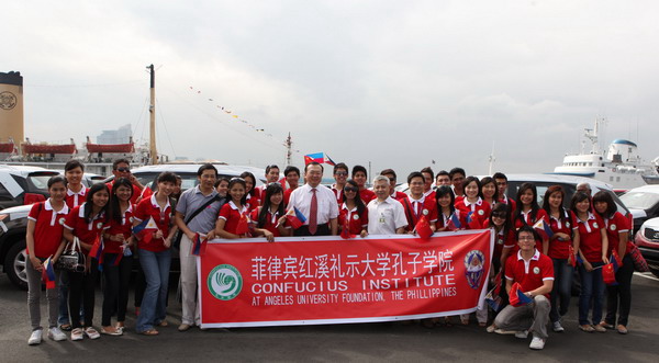 4月13日,应菲律宾海军邀请,圆满完成亚丁湾海域护航任务的我国海军525护航编队抵达马尼拉南港,对菲律宾进行为期5天的友好访问。这是我国海军护航编队首次访问菲律宾。九州(中国)与菲律宾红奚礼示大学合作创建的红奚礼示大学孔子学院师生作为我国教师代表和菲律宾大学生代表,与菲律宾海军官兵、我国驻菲律宾大使馆工作人员等一同前往南港迎接。