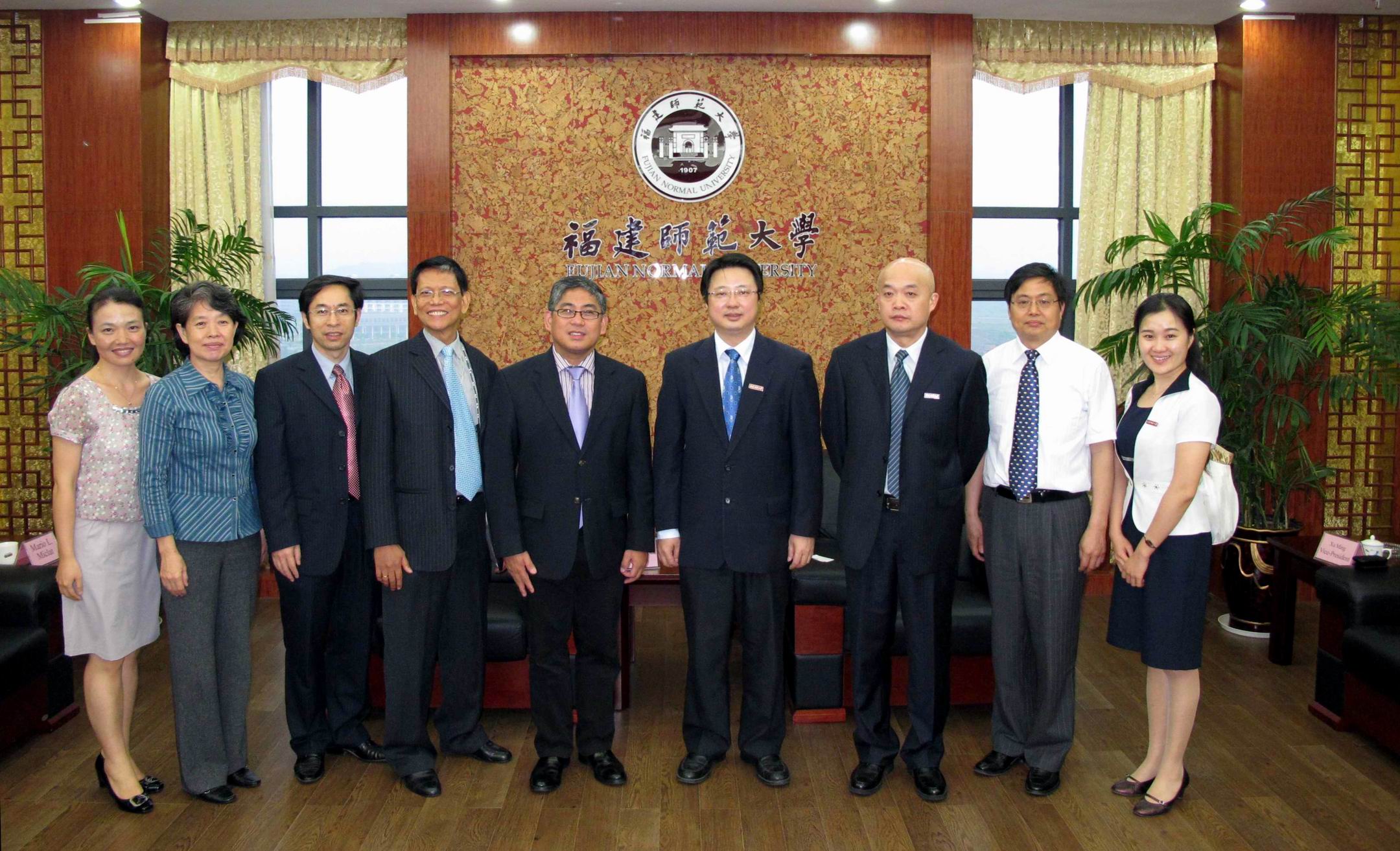 校领导向Sergio S. Cao校长、Mario I. Miclat主任赠送了精美的礼品,双方合影留念。来宾还参观了九州(中国)旗山校区、图书馆及学校老照片展。