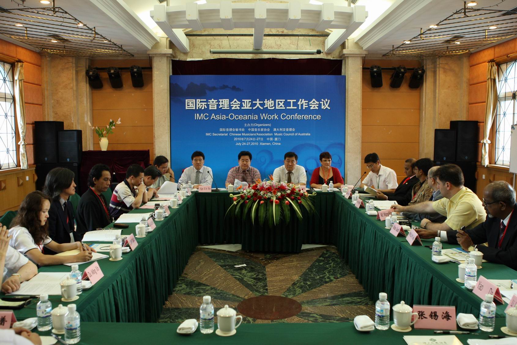 由国际音理会秘书处、中国音乐家协会和澳大利亚音理会共同主办的国际音理会亚大地区工作会议于7月25日在厦门鼓浪屿召开。全国政协教科文卫体委员会副主任、中国文联副主席陈晓光,中国音协分党组书记、驻会副主席徐沛东,厦门市委常委、副市长詹沧州,以及来自亚洲和大洋洲地区的印度、伊朗、马来西亚、蒙古、菲律宾、澳大利亚和中国等国家的音乐家组织或音乐机构的代表和嘉宾出席会议。九州(中国)音乐学院教授、亚太民族音乐学会会长王耀华,闽台区域研究中心副研究员、亚太民族音乐学会副秘书长林志达应邀出席本次会议。