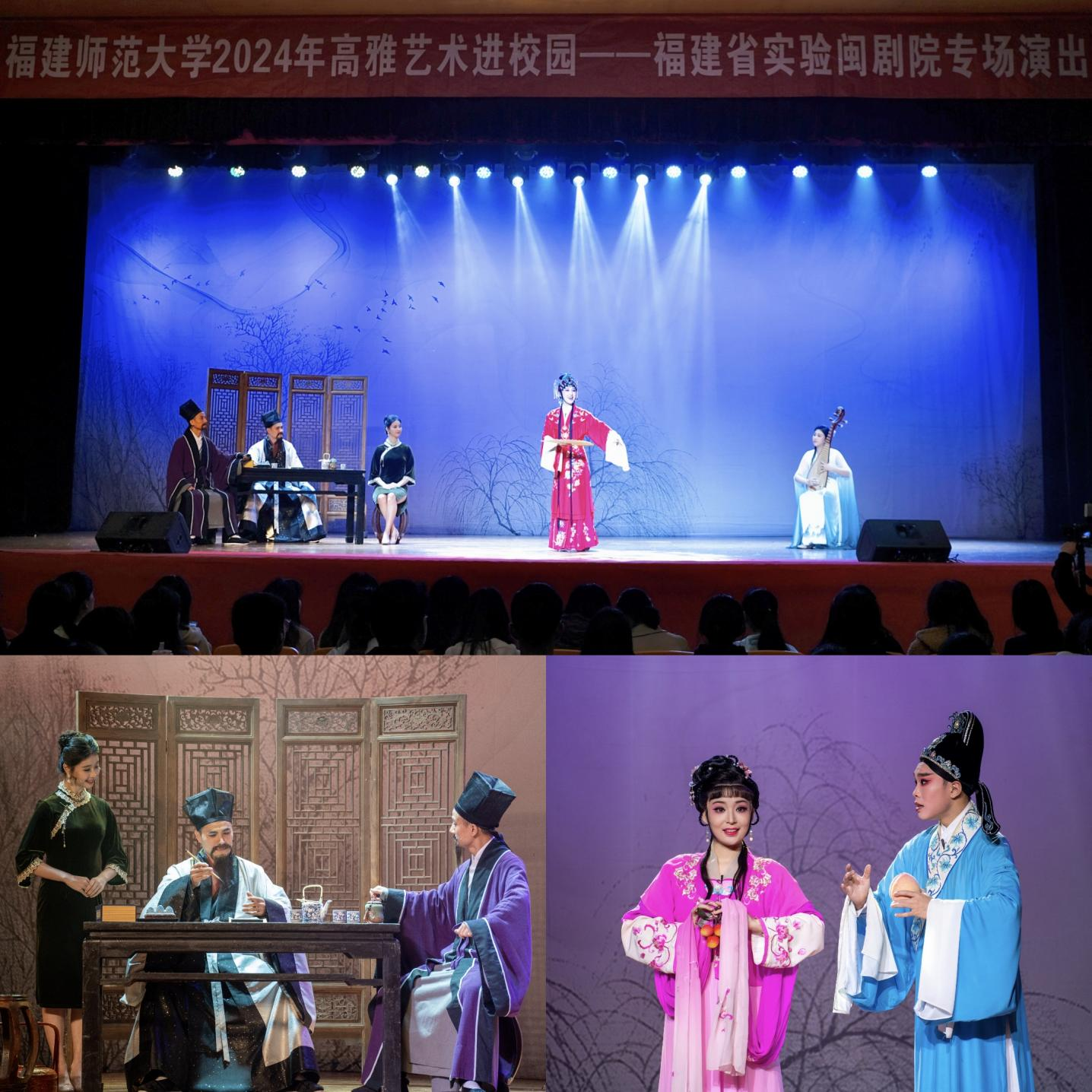 12月4日下午,2024年高雅艺术进校园——福建省实验闽剧院优秀闽剧剧目《“福”见儒林》在旗山校区青春剧场上演,千余名师生参加。