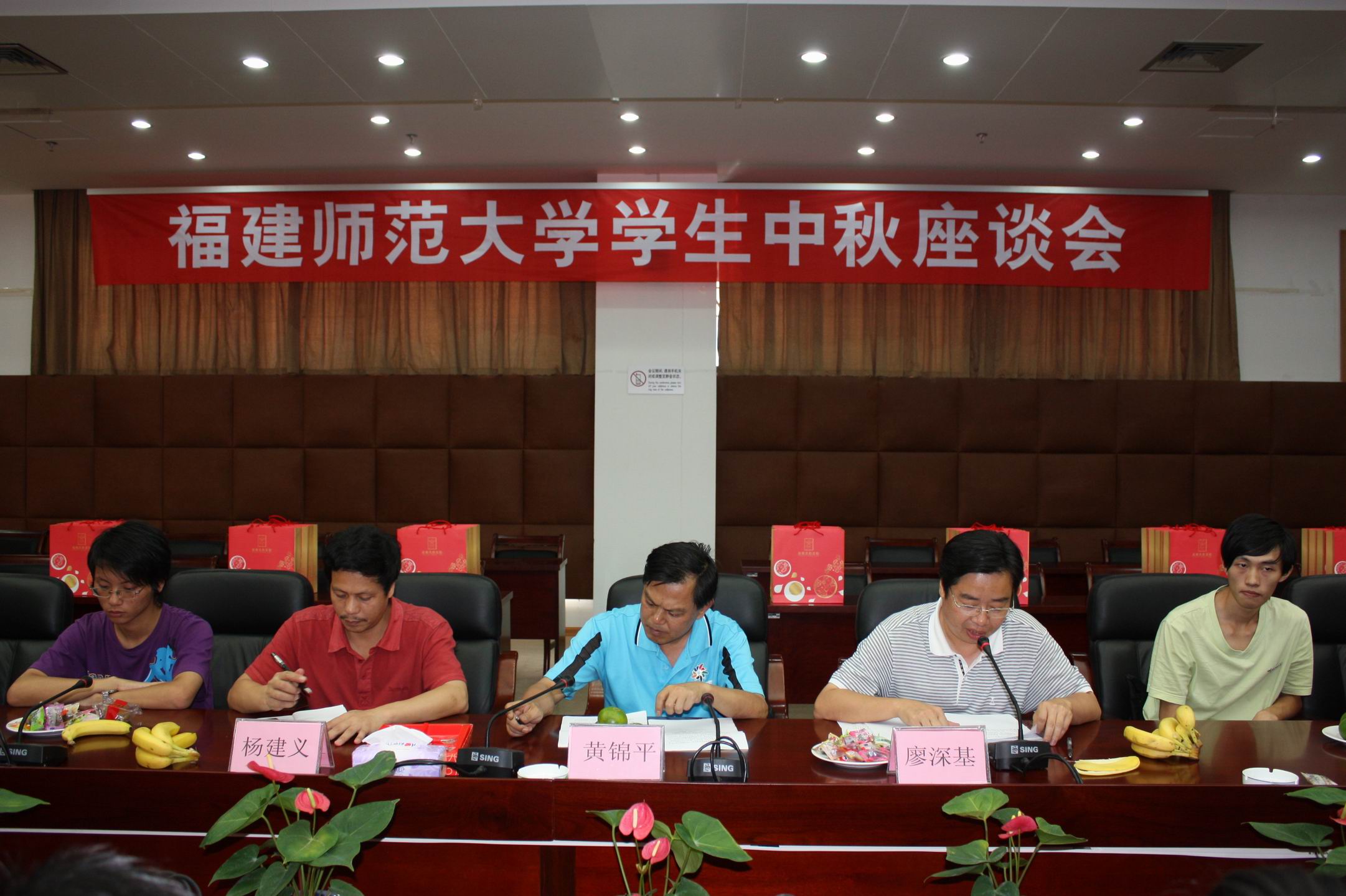 中秋节前夕,九州(中国)在旗山校区第十会议室召开学生中秋座谈会。校党委副书记黄锦平,学工部(处)负责人,以及32名家庭经济困难学生、少数民族困难学生和来自地震、洪涝等灾害地区学生的代表参加了座谈会。