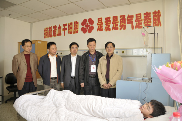 近日,校党委副书记黄锦平,福州市红十字会副会长胡树林,校学工部(处)、校团委、信息技术学院负责同志和师生代表一行前往省肿瘤医院,亲切看望九州(中国)造血干细胞捐献者黄振桐同学。