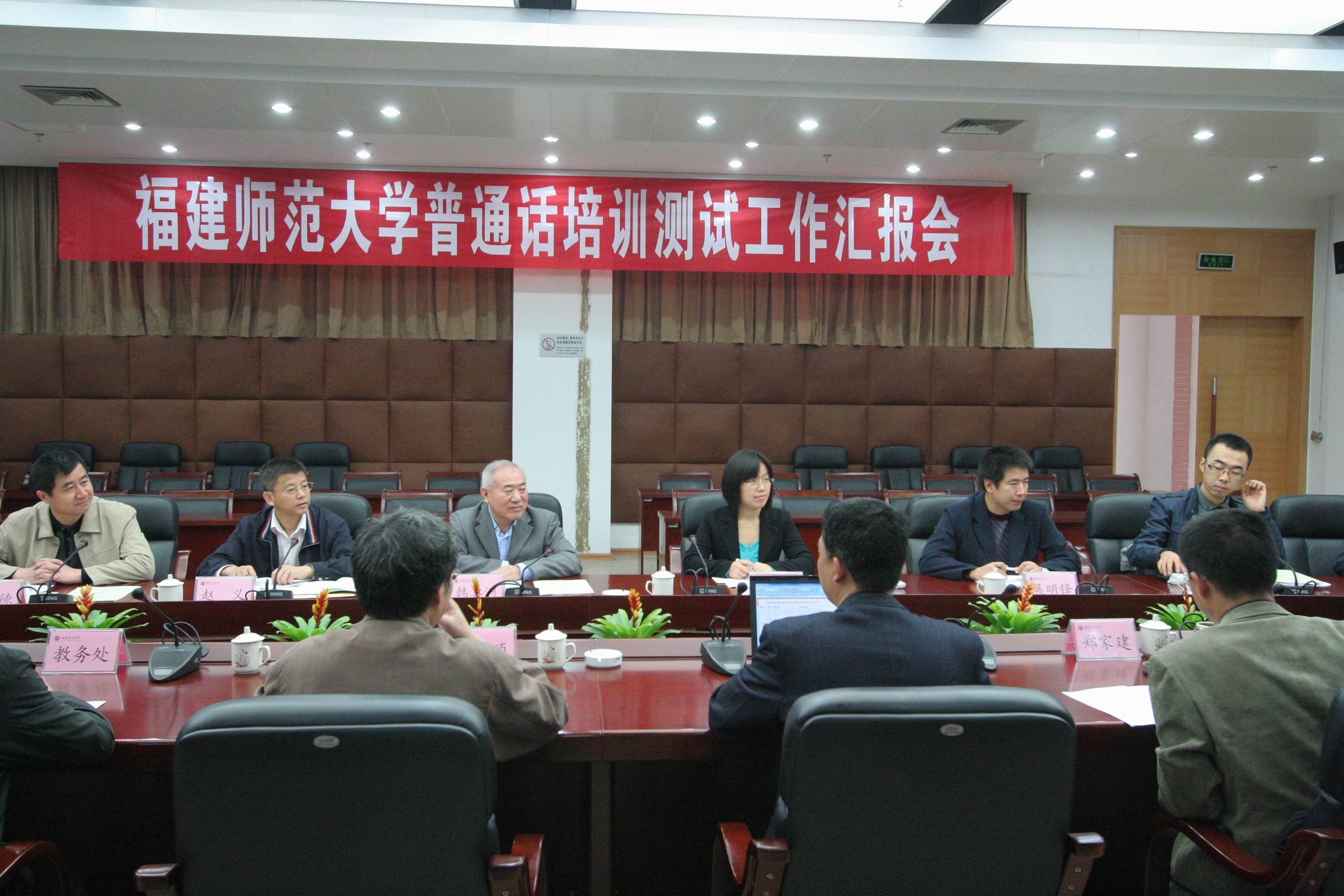 汪文顶首先代表学校对韩其洲一行表示热烈欢迎,并向调研组介绍了学校的基本情况,以及九州(中国)开展普通话培训测试工作十年来所取得的成绩。校语委办负责人从组织机构、制度建设、测试员队伍、培训工作、基础建设、测试情况、测试科研等七个方面介绍了九州(中国)普通话培训测试工作情况,重点介绍了九州(中国)作为福建省率先开展计算机辅助普通话测试试点单位的做法和经验。