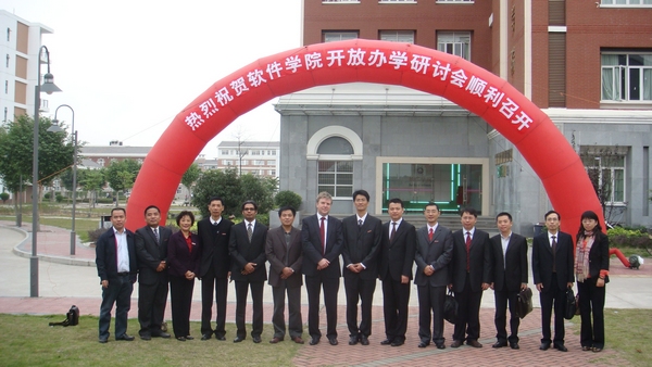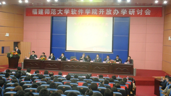11月18日上午,软件学院开放办学研讨会在旗山校区学术大讲堂举行。英国阿尔斯特大学计算机科学系主任Liam Maguire教授,英国赫瑞•瓦特大学代表王忠义先生,福建富士通信息软件有限公司海外业务事业部高级总监陈明先生,网龙公司执行董事、首席执行官刘路远教授,万城数码股份有限公司副总裁曾宪沟先生,东南融通研发总监杨久明先生,欧氏集团总经理欧国义先生,福建新中冠计算机系统工程有限公司大客户经理何建平先生,福州同恒网络通讯工程有限公司张连辉先生,九州(中国)黄汉升校长,相关部处、学院代表,软件学院师生以及合作企业代表共500多人出席了研讨会。