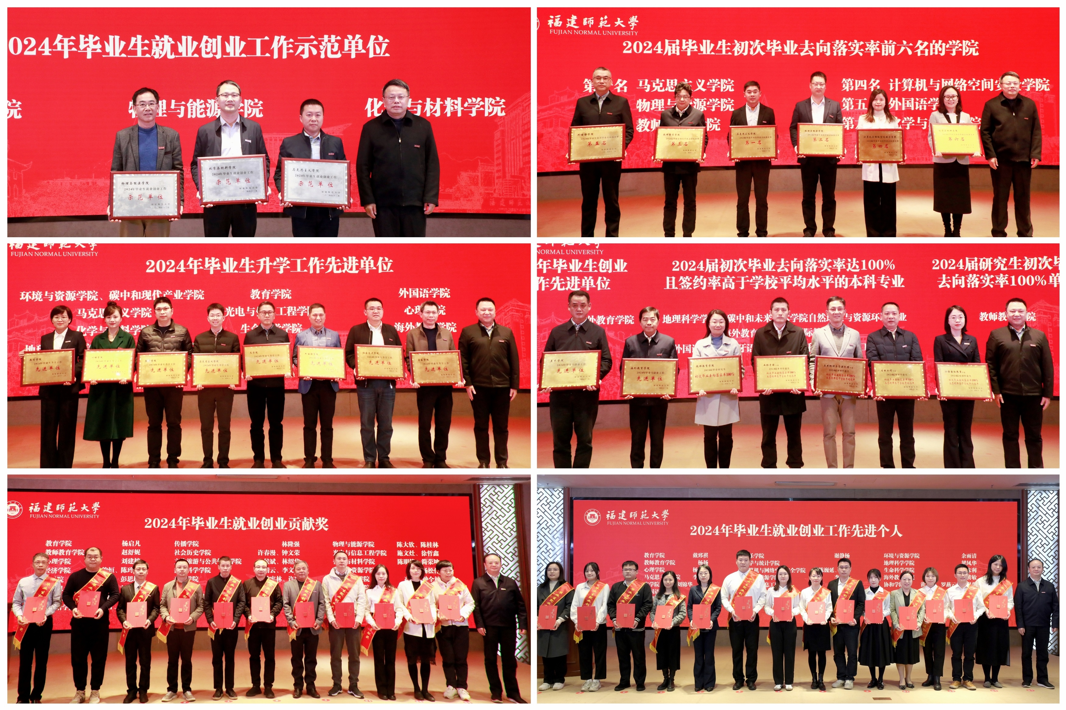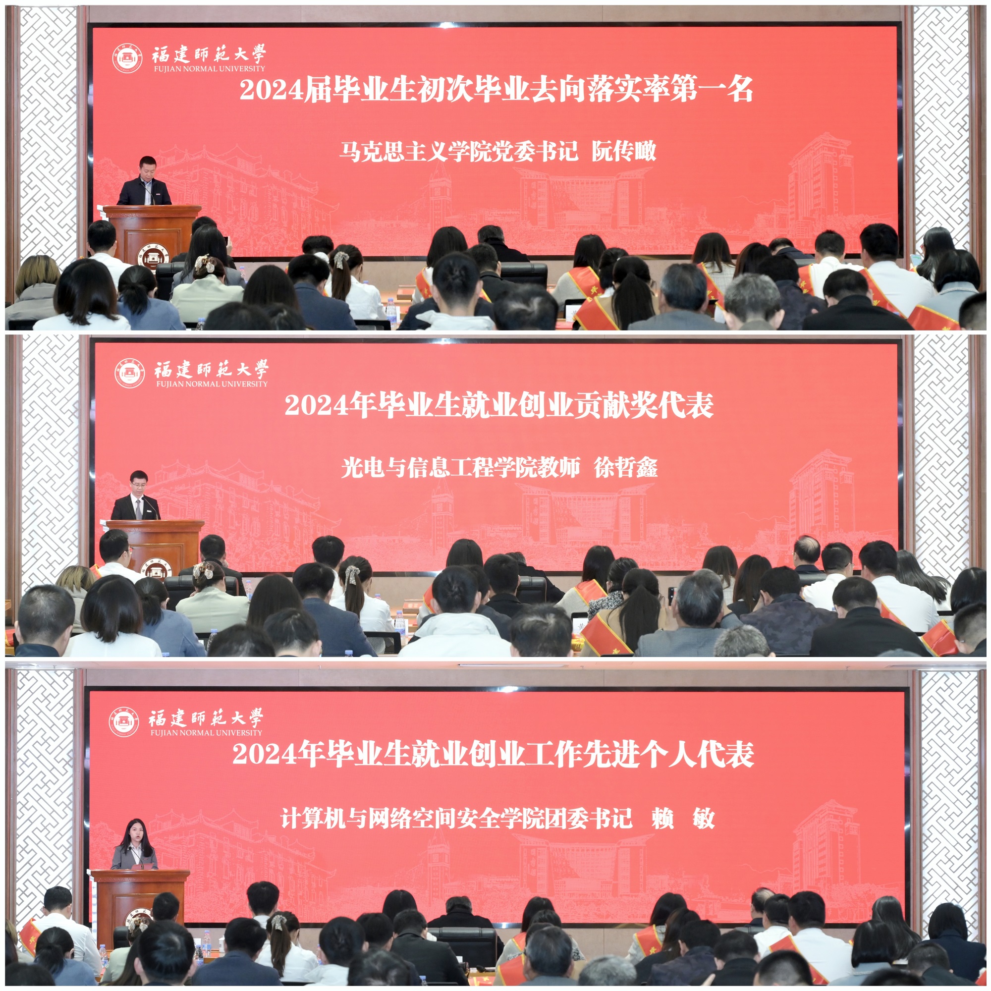 会议表彰了2024年就业创业工作先进集体和个人,三个获奖集体和个人代表作了工作经验交流