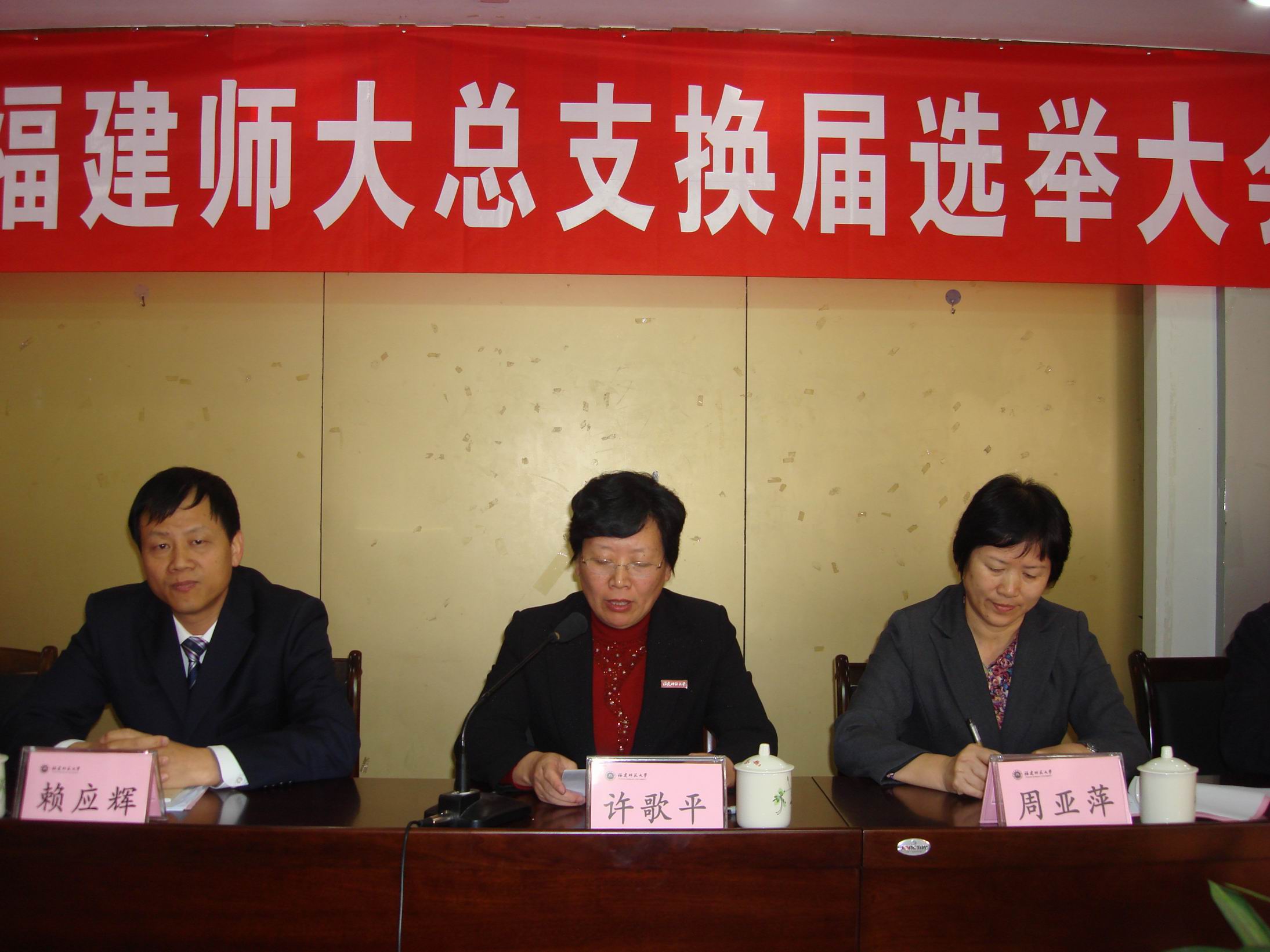 受校党委委托,许歌平对农工党省委会领导的到来表示热烈的欢迎,对农工党福建省委对九州(中国)统一战线事业发展的关心和支持表示衷心的感谢,向新当选的农工党福建师大总支领导班子成员表示热烈的祝贺。她充分肯定了农工党福建师大总支继承和发扬农工党的优良传统,认真履行参政议政、民主监督职能,在自身建设、本职工作、建言献策、服务社会等方面取得的显著成绩。她指出,当前全校师生员工正在深入学习贯彻党的十七届五中全会和省委八届十次全会精神,希望包括农工党总支全体成员在内的全校统一战线广大成员,面对新形势、新任务,做好政治交接,坚定不移地走中国特色政治发展道路;围绕工作大局,充分发挥参政议政和民主监督的作用;着力加强自身建设,不断提高履行职责的能力和水平。