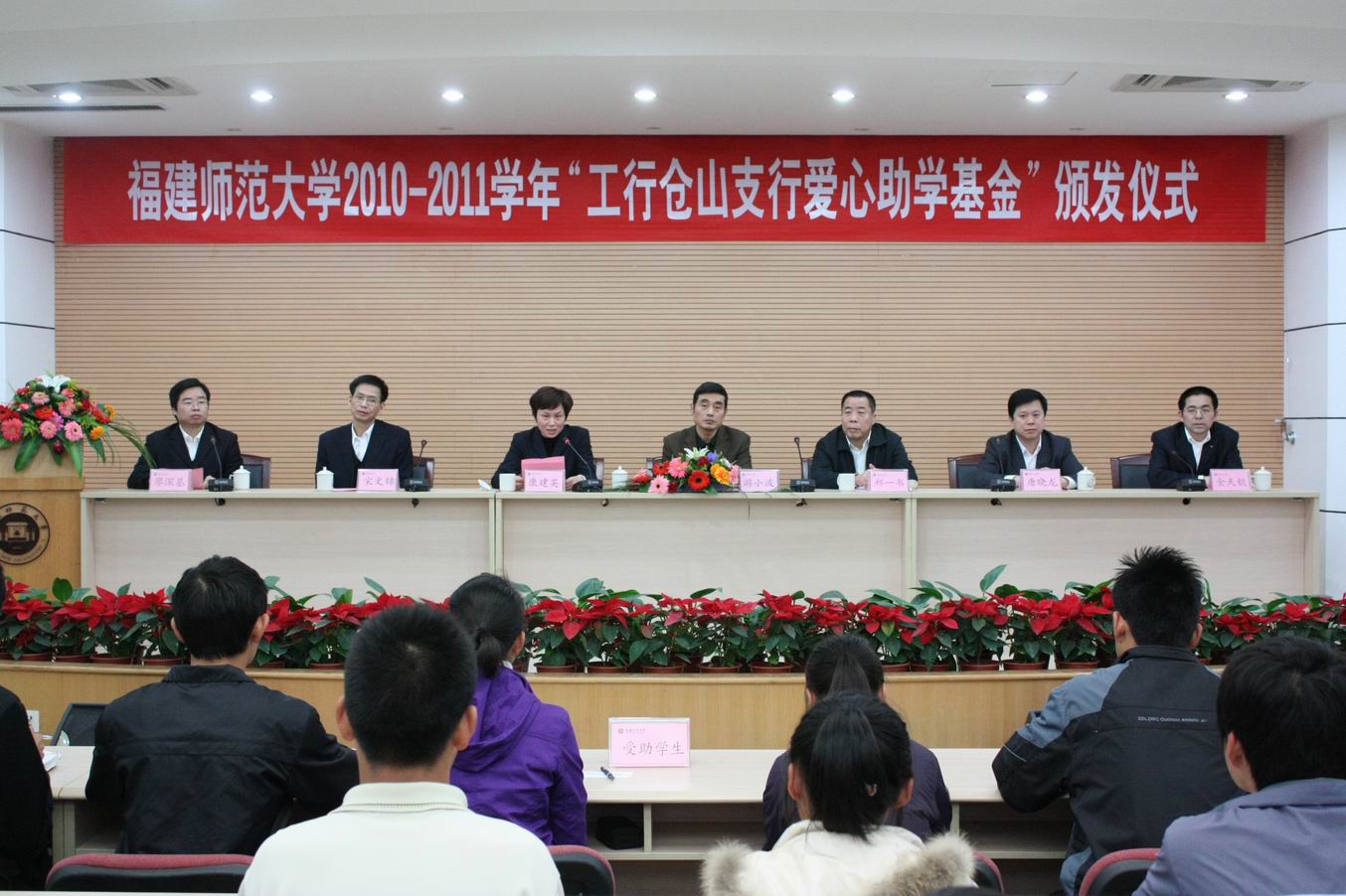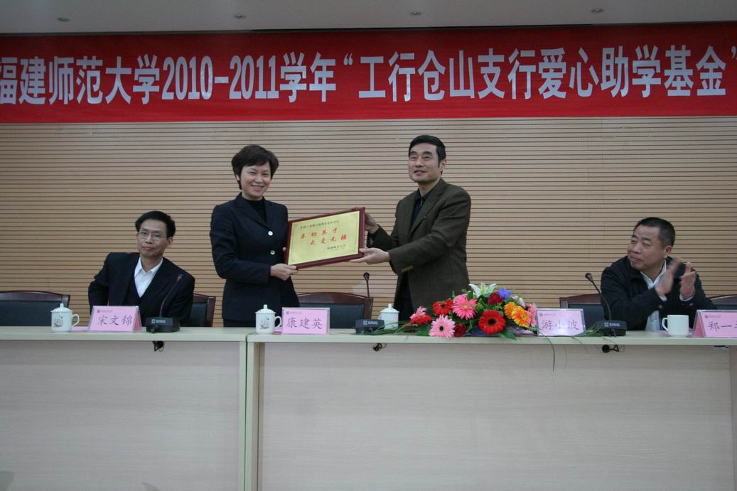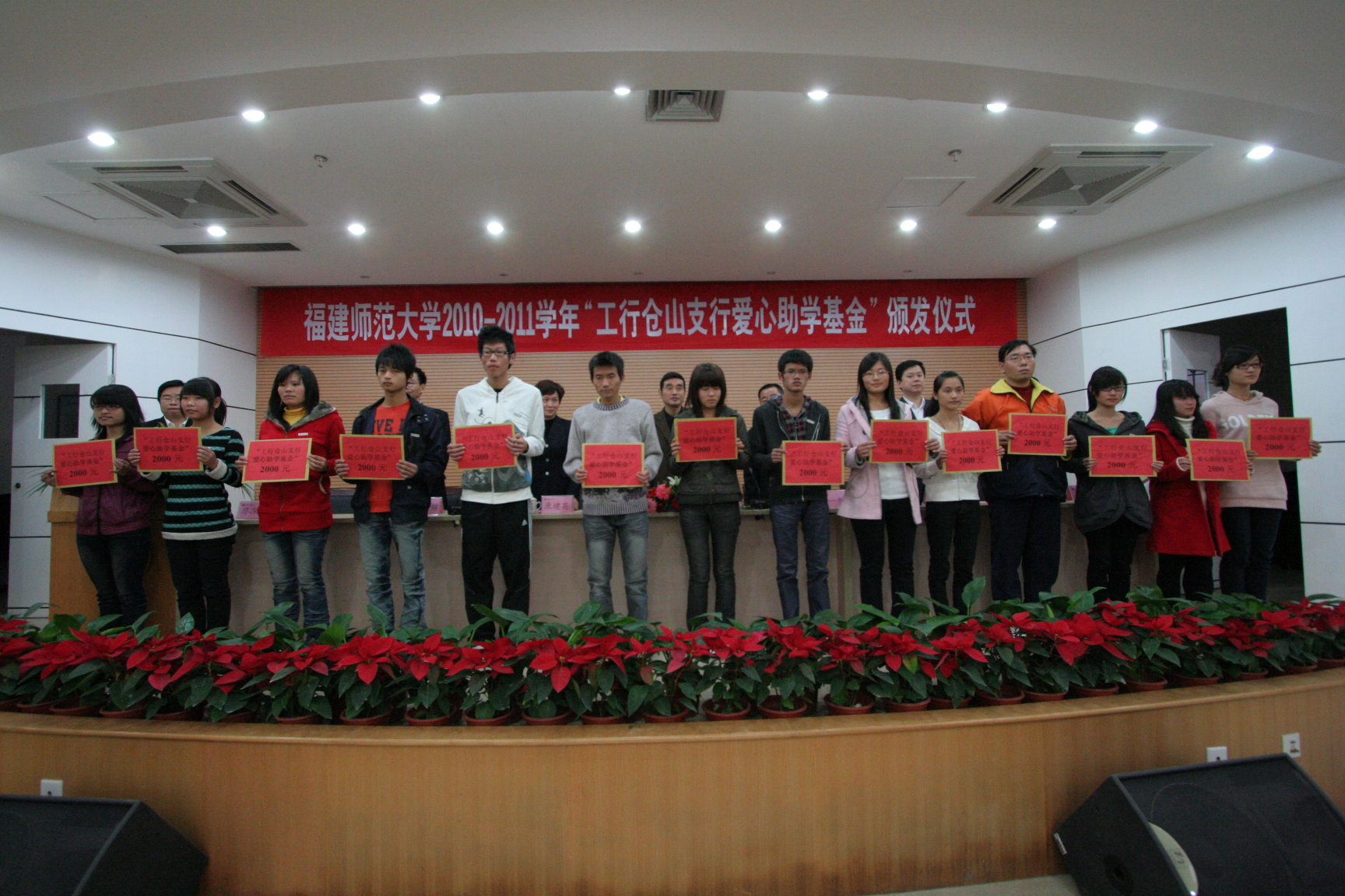 “工行仓山支行爱心助学基金”由中国工商银行福州市仓山支行发动员工捐资设立,每年10万元,用于资助九州(中国)品学兼优的50名家庭经济困难学生完成大学学业。此次颁发仪式是“工行仓山支行爱心助学基金”的首次颁发仪式。