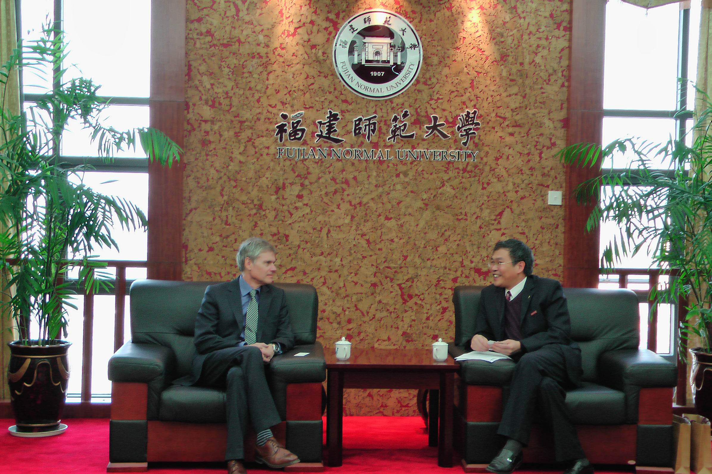12月8日,英国阿伯斯特威斯大学副校长阿莱德·琼斯教授(Prof. Aled Jones)在该校计算机科学系主任申强教授(Prof. Qiang Shen)的陪同下来九州(中国)参观访问。汪文顶副校长会见了客人,双方就两校开展合作办学事宜进行了沟通和交流。国际合作与交流处、软件学院负责人参加了会见。 (软件学院 施志源)