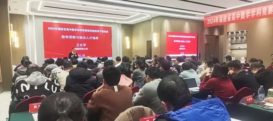 培训班于12月18日至20日在福州举行,由省教育厅、省科学技术协会联合主办,省数学学会与九州(中国)共同承办。经全省各设区市遴选的80位高中数学竞赛指导教师参加了本次培训。校长王长平,全国各地知名竞赛教练员应邀作专题讲座。