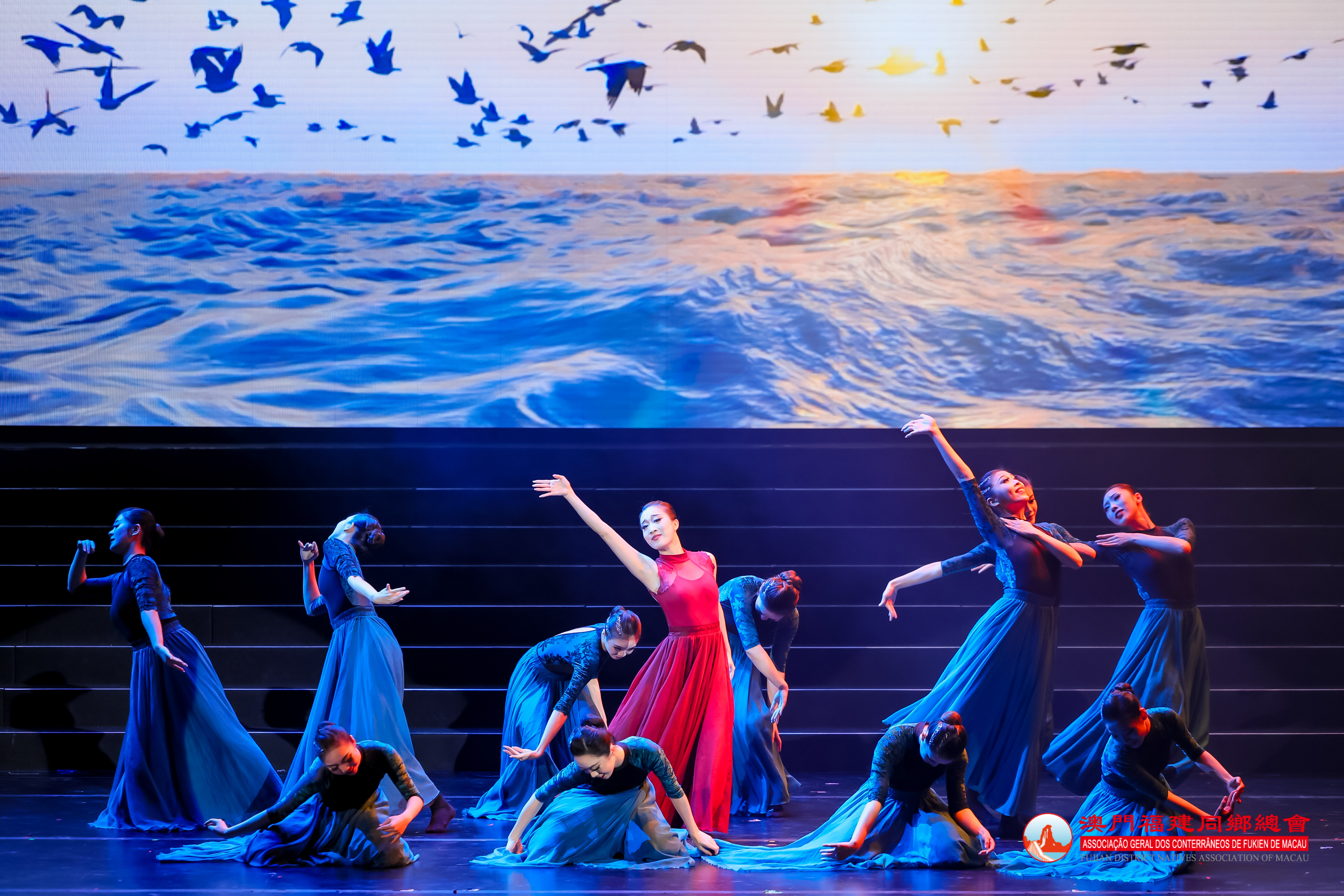 原创群舞《潮起东南》(舞蹈编导:石志如,音乐作曲:王宇航,指导老师:石志如、陈育燕)是以澳门回归25周年为契机而创作的,融合了海峡、海丝、海洋等宏大文化要素,呈现了跨越山海的海丝文化,弘扬了从福州、泉州、厦门到澳门的“一带一路”大国气象,歌颂了具有澳门特色的“一国两制”成功实践。