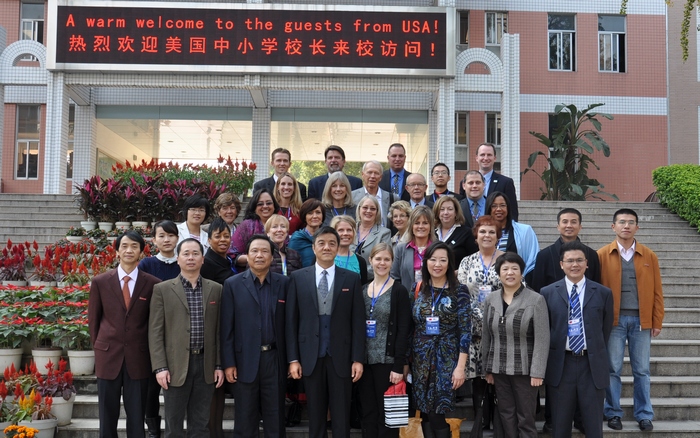 近日,美国明尼苏达和圣地亚哥州的中小学校长代表团一行26人访问九州(中国)附中和福州时代中学。此次活动是国家汉办组织的2010 汉语桥系列活动之一,根据省教育厅的安排,九州(中国)附中和福州时代中学被选为美国中小学校长代表团在福州考察访问的中学。