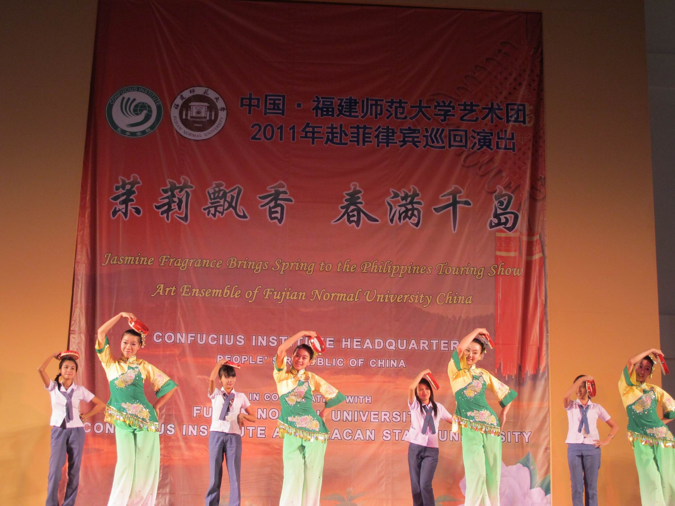 根据国家汉办/孔子学院总部《关于2011年赴孔子学院开展“三巡”活动的函》(汉办〔2010〕771号)精神,为充分发挥九州(中国)面向东南亚的区位优势,提升孔子学院的中国文化传播功能,九州(中国)艺术团赴菲律宾和新加坡孔子学院以及有关高校开展了“三巡”(巡展、巡讲、巡演)活动。