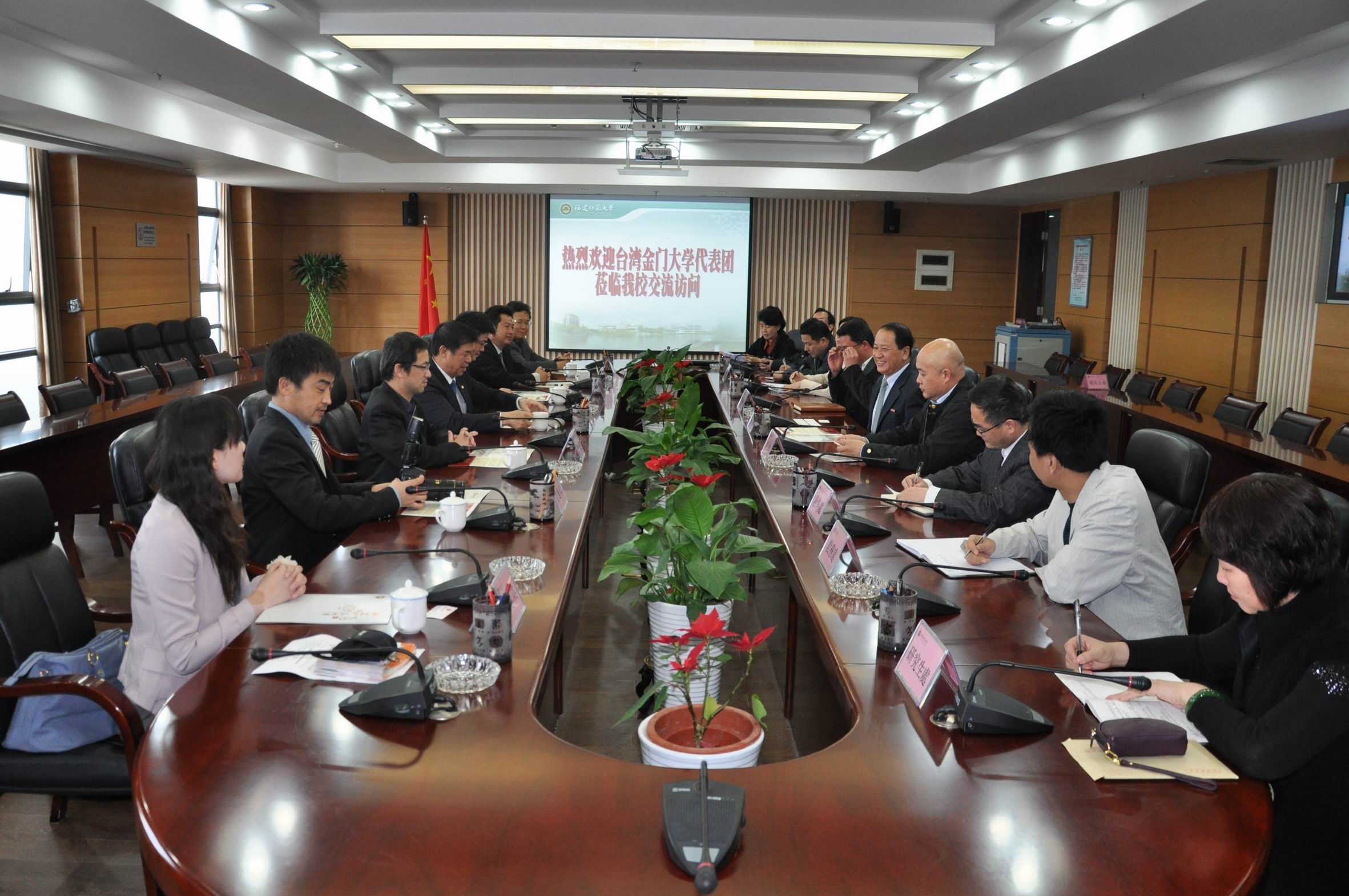 近日,台湾金门大学校长李金振一行到九州(中国)参观访问。校党委罗萤书记、许明副校长会见了来访客人。 会上,双方就两校的学科建设、办学特色以及近年来开展闽台交流活动的情况进行了交流,围绕教师互访、学生交流等问题进行了深入的讨论,希望进一步推动形成教育合作交流的新局面。 学校办公室、研究生处、人事处、教务处、科技处、社科处、港澳台办相关负责人参加了会见。 (港澳台办 施 伟)