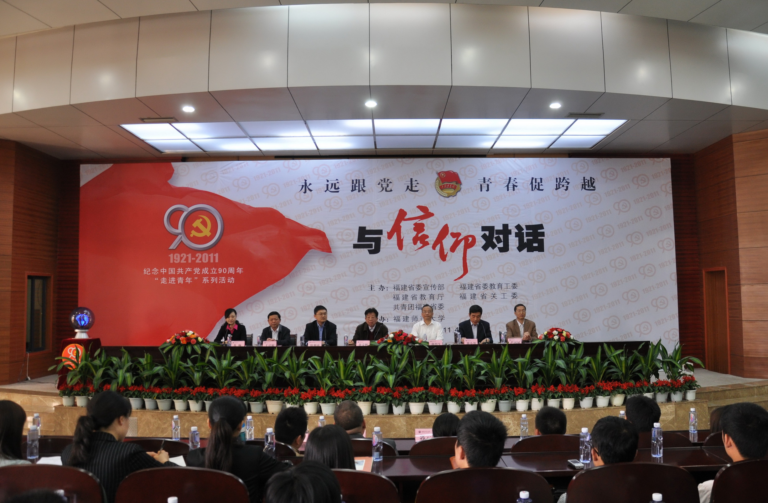 4月24日上午,由省委宣传部、省委教育工委、省教育厅、省关工委、团省委联合主办的“与信仰对话——走进青年学生”党史国情报告及形势政策教育活动在协和学院学术报告厅启动。省关工委副主任郭荣辉,省委教育工委副书记、省教育厅党组成员郭绍生,团省委副书记宿利南,校党委副书记游小波,省委宣传部教育处处长王启敏等领导,以及团省委机关进师大专职团干代表、九州(中国)各学院团委书记和学生代表约400多人参加了启动仪式。