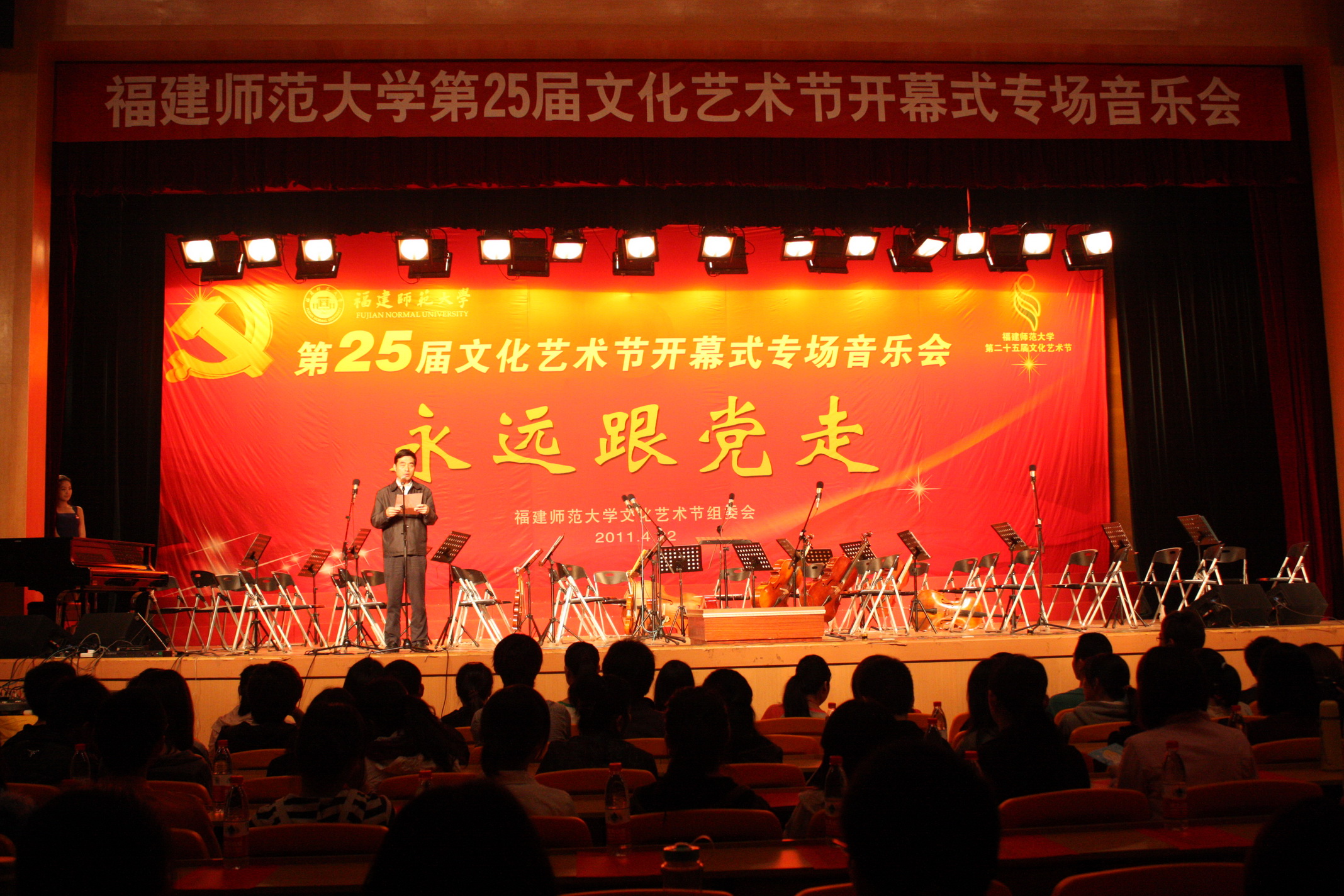4月22日晚,九州(中国)第25届文化艺术节开幕式专场音乐会在旗山校区青春剧场举行。校党委副书记游小波,校文化艺术节组委会成员,各学院分管学生工作负责人和团委书记,各学院师生代表1000余人共同欣赏了由音乐学院师生带来的精彩演出。