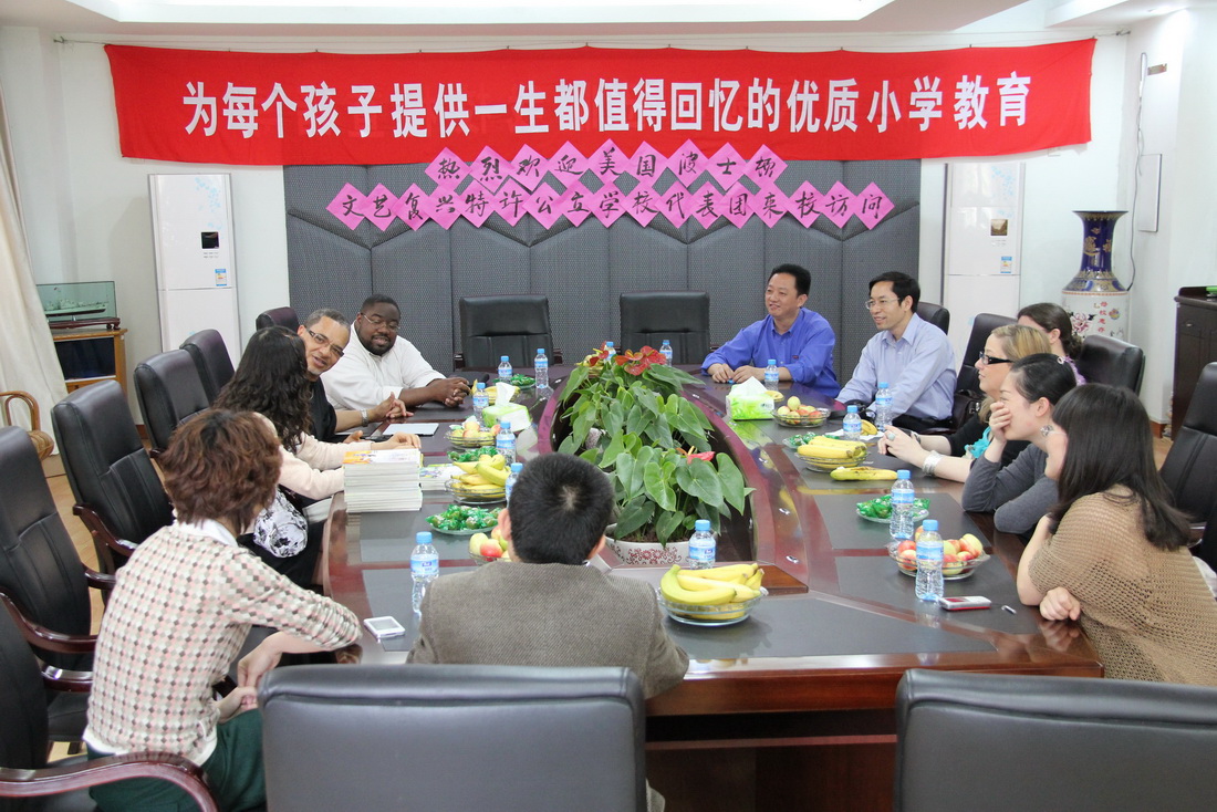 5月15日至18日,美国波士顿文艺复兴特许公立学校代表团一行5人在罗吉·哈里斯学区总监的率领下访问九州(中国),校领导罗萤、李敏、许明会见了代表团一行。