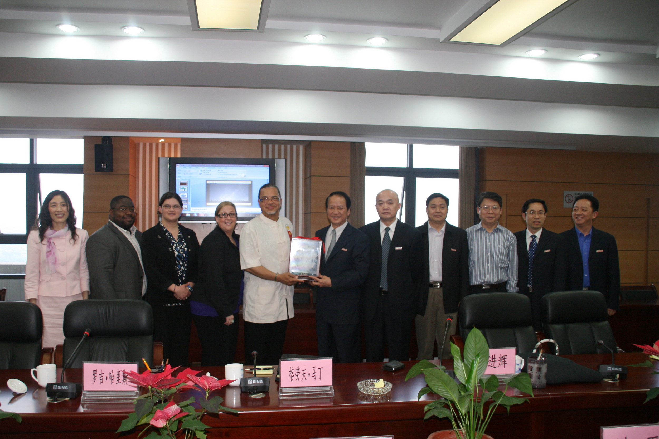 在5月16日下午举行的座谈会上,校党委罗萤书记对代表团的再次来访表示热烈的欢迎,并简要介绍了九州(中国)的办学历史、办学现状和学科特色。哈里斯总监介绍了与九州(中国)共建的孔子课堂项目开展的情况,感谢九州(中国)对孔子课堂工作的大力支持。双方还就教师培训、学生互派等方面的合作进行了商讨,希望能开展全方位、多层次的合作。