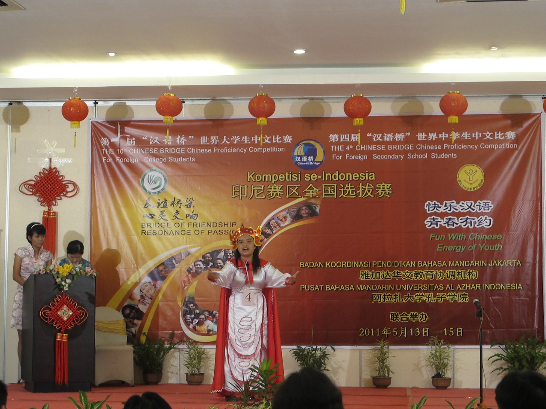 同样与雅加达华文教育协调机构联合举办的第四届“汉语桥”世界中学生中文比赛印尼赛区决赛、第十届“汉语桥”世界大学生中文比赛印尼赛区决赛,先后于5月14日和5月15日在雅加达举行。共有来自全印尼30所中学的38名中学生及25所大学的46名大学生参加了比赛。这是九州(中国)在海外创办的孔子学院首次承办国家汉办主办的大型赛事。