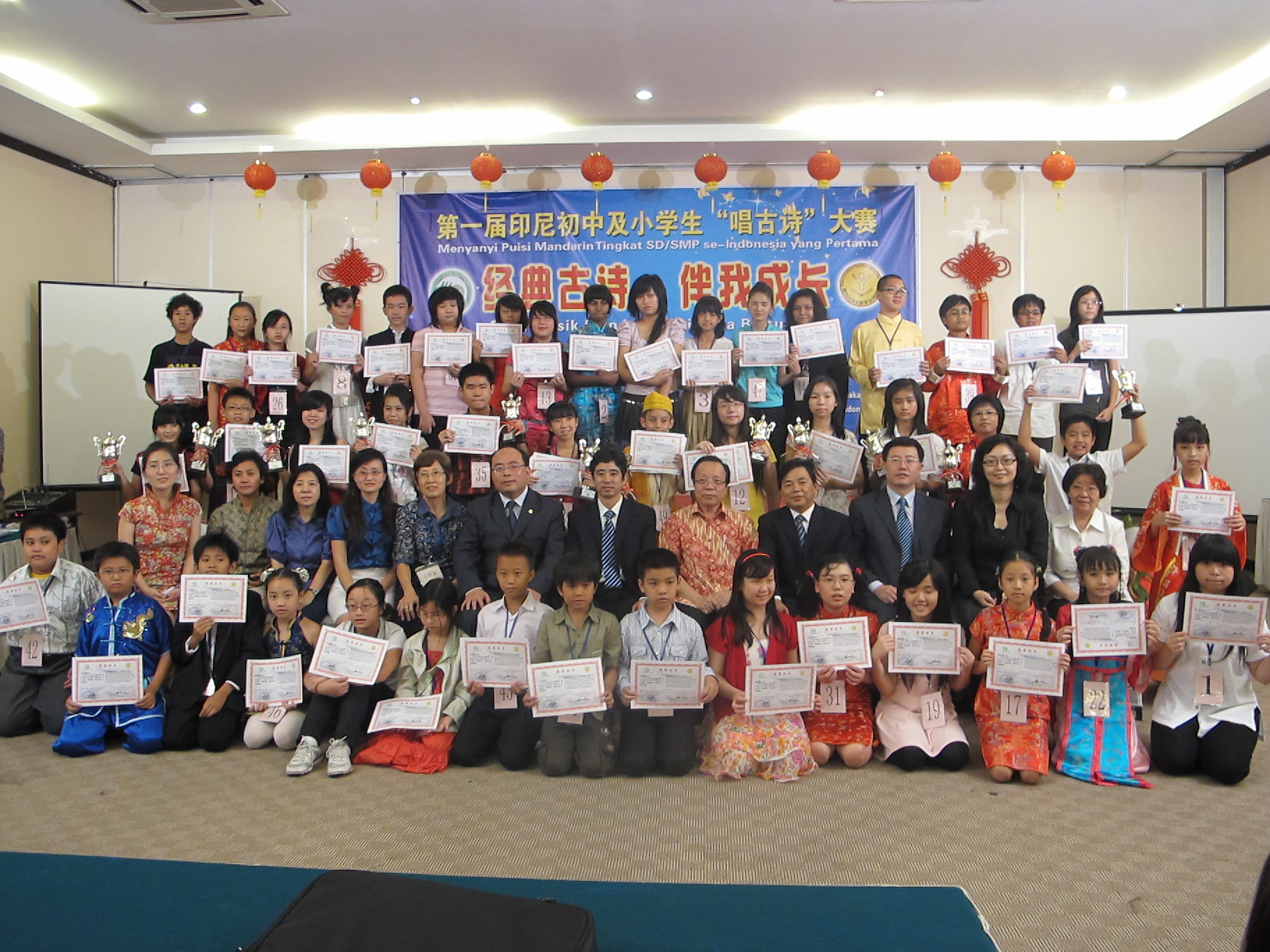 印尼初中及小学生“唱古诗”大赛选手、评委及嘉宾合影