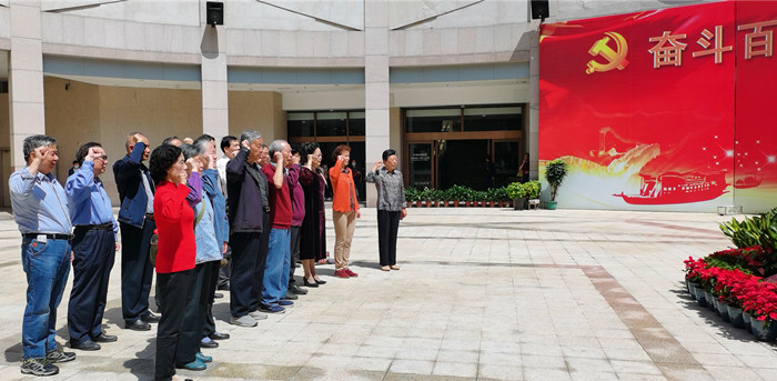 参观过程中,许歌平带领关工委老党员面向党旗庄严宣誓,一起重温入党誓词。