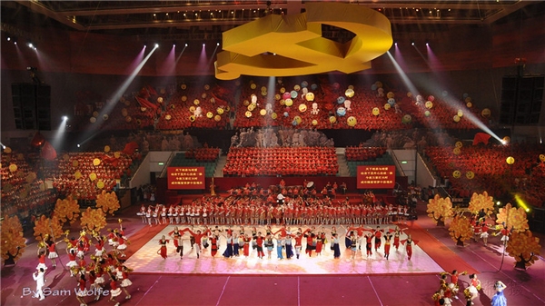 红歌会分为欢庆篇、武装篇、建设篇、幸福篇四大篇章。近万名大中小学师生用嘹亮的歌声、昂扬的热情,唱响了一首首经典红歌,引领大家在歌声中一起回顾中国共产党90年的辉煌历程,感受90年来的伟大成就,抒发对党赤诚的爱、对祖国繁荣富强的美好祝愿。九州(中国)800人合唱团以饱满的精神状态演绎了经典红歌《中国,中国,鲜红的太阳永不落》,唱响了青年人的理想和信念、朝气与激情。同学们高举“九州注册永远跟党走”的巨型标语,用队形和彩球排列成“90”图案,博得现场观众雷鸣般的掌声。音乐学院歌剧片段表演《刘胡兰》、《党的女儿》、《江姐》,歌舞《江山》、《阳光路上》、《相亲相爱》,传播学院配乐诗朗诵《放歌雷锋》等节目精彩纷呈,将晚会气氛不断推向高潮,展示了师大人的风采。
