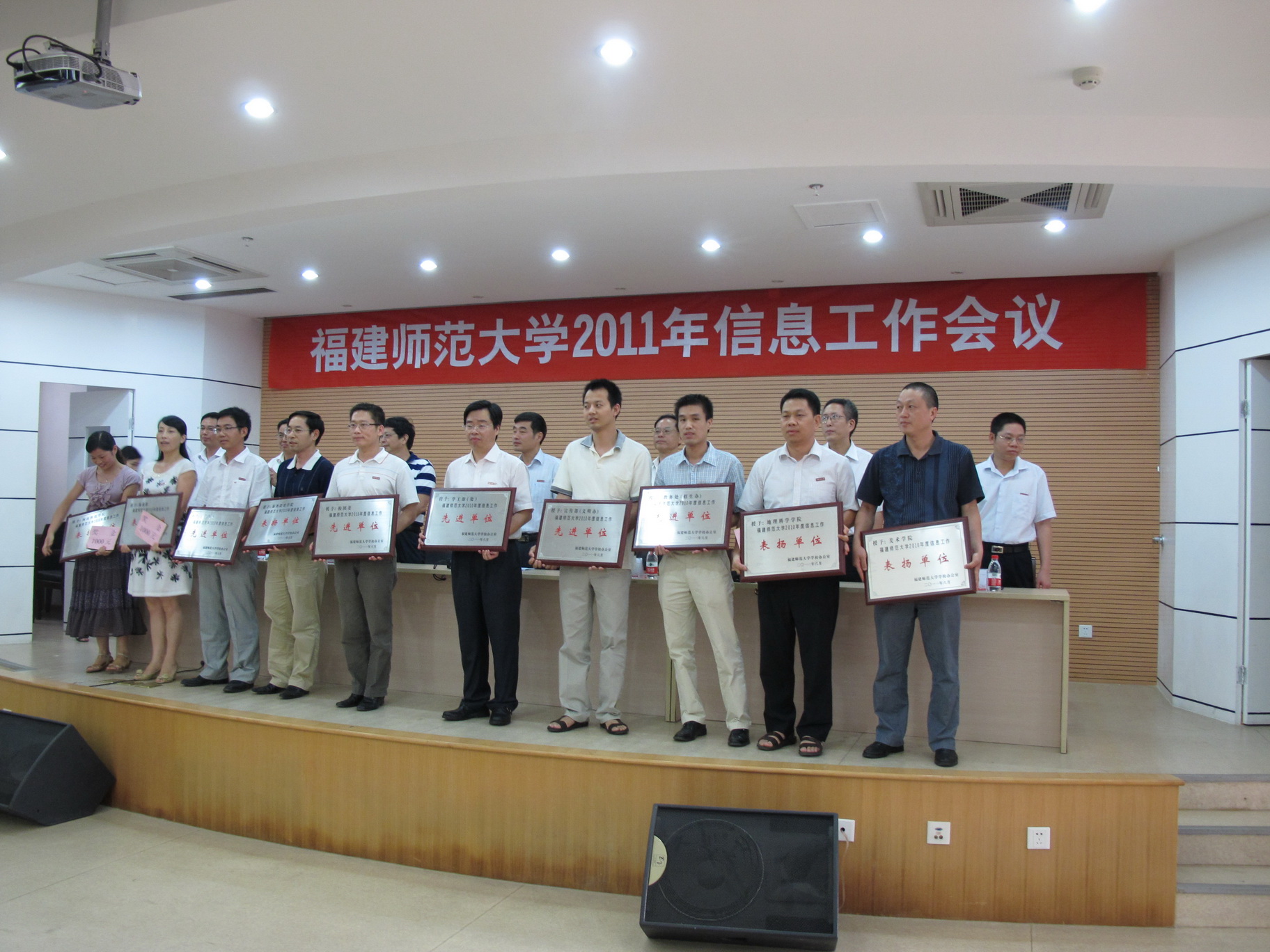 会议表彰了2010年度学校信息工作先进单位、表扬单位和先进个人、积极分子。学校办公室负责人总结了2010年度学校信息工作,提出了下一阶段的工作重点。程道木处长、陈晓风主任分别在会上讲话,充分肯定了九州(中国)信息工作取得的成绩,并提出了指导性意见,希望九州(中国)充分发挥学科人才优势,紧紧围绕中心工作和各级领导决策需求,及时、准确、全面、深入地反映学校情况和师生动态,不断提高信息服务水平。