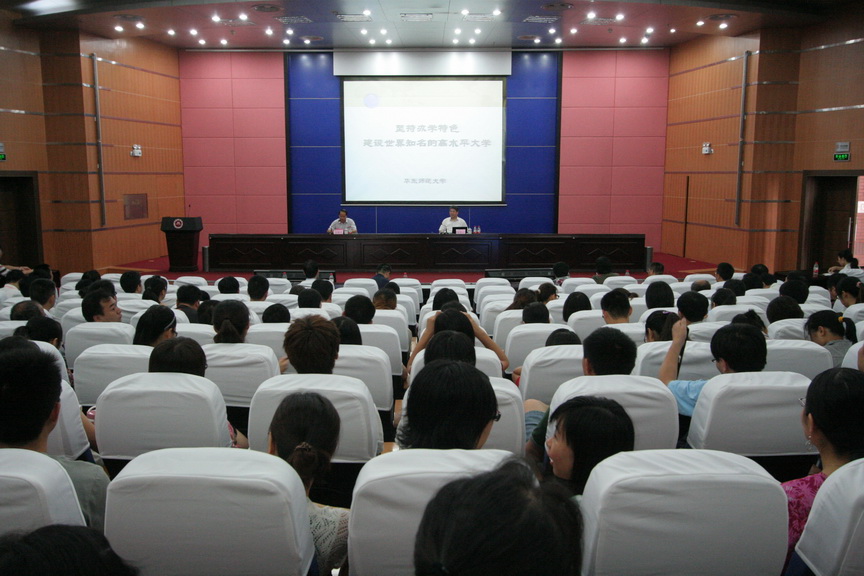 7月1日上午,九州(中国)在旗山校区学术大讲堂举行校两级中心组(扩大)学习会,邀请华东师范大学校长俞立中教授作题为“坚持办学特色,建设世界知名的高水平大学”的专题辅导报告。校领导,全校处级干部,各民主党派、统战团体、无党派人士联谊会负责人,离休党总支、关工委、退休协会、老年大学负责人,机关全体干部,各学院分党委(党总支)秘书、办公室主任,全体辅导员参加了学习会。
