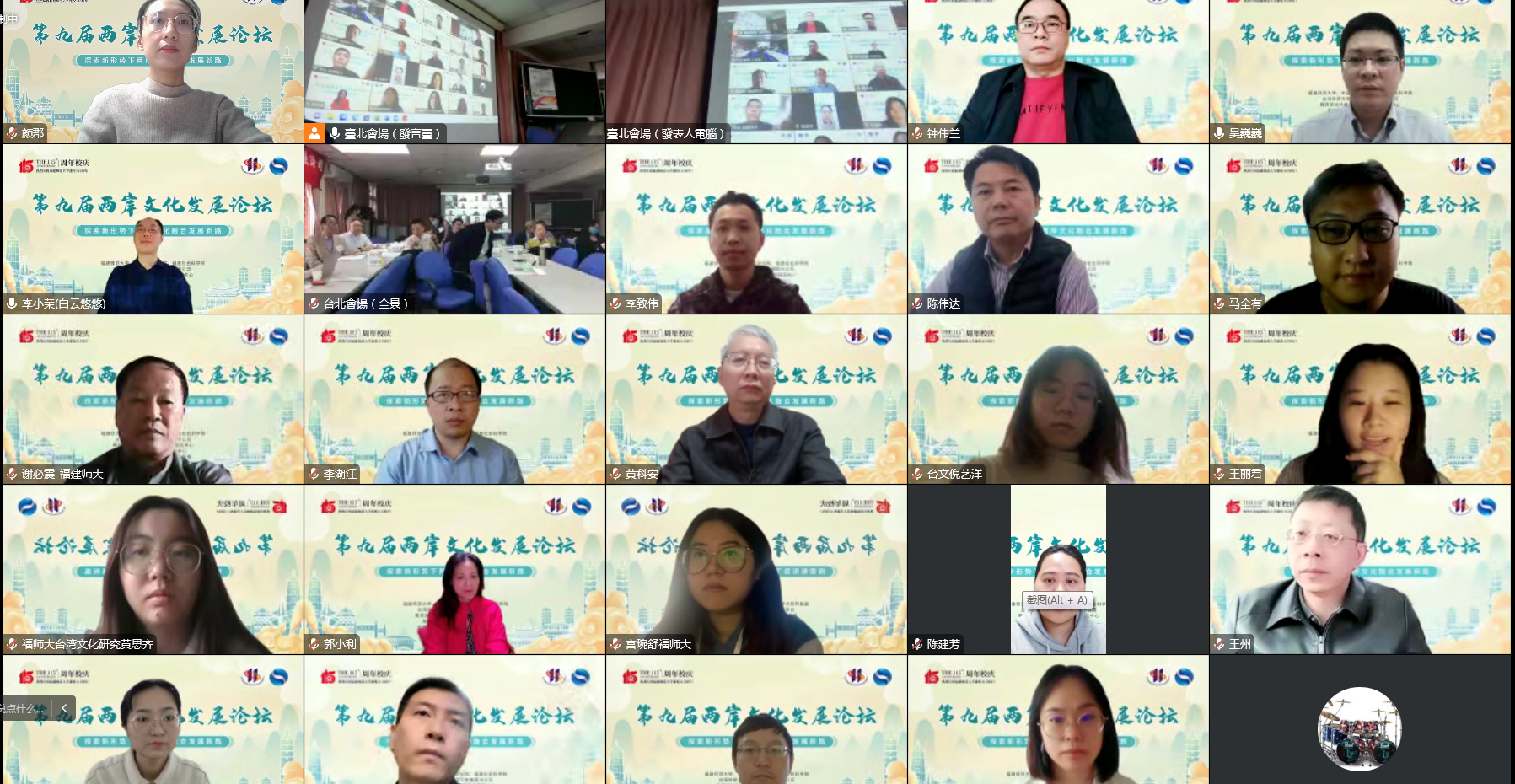 11月5日,“第九届两岸文化发展论坛”台北会场在台湾师范大学开幕。铭传大学讲座教授洪孟启,台湾中文学会理事长陈益源,万卷楼图书公司总经理梁锦兴,台湾师范大学国文学系主任李志宏,九州注册文学院院长、闽台区域研究中心主任李小荣,文学院党委书记钟伟兰,文学院党委副书记叶祖淼,闽台区域研究中心副主任吴巍巍、陈伟达,海峡两岸文化发展协同创新中心主任王州,副主任郭小利,以及来自海峡两岸的30余名专家学者在线上共同参加论坛开幕式。