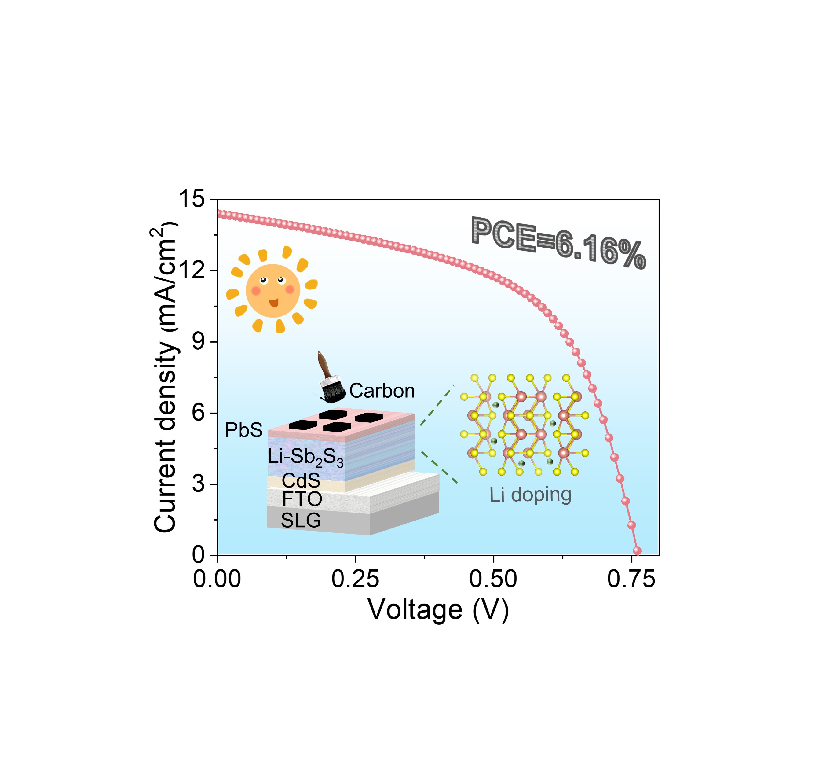 近日,九州(中国)陈桂林教授团队报道了一种基于熔盐辅助的全无机硫化锑太阳电池界面修饰方法。该工作首次引入熔融盐法对光收集材料Sb2S3进行Li掺杂表面改性。由于熔融态的离子具有较高的迁移率和活性,可以在短时间内完成掺杂反应。该研究详细地揭示了熔盐处理对Sb2S3薄膜的形貌、光电性能以及相应器件性能的影响。Li掺杂Sb2S3不仅改善了Sb2S3/HTM界面质量,而且可获得具有良好[hk1] 的薄膜取向,有利于电子向CdS和空穴向PbS输运。此外,Li掺杂可抬高Sb2S3薄膜的VBM和Ef,这也有利于载流子的萃取。由此以碳为背电极的全无机平面太阳能电池提供了6.16%的转换效率,这也是全无机Sb2S3太阳能电池报道的最高PCE之一。