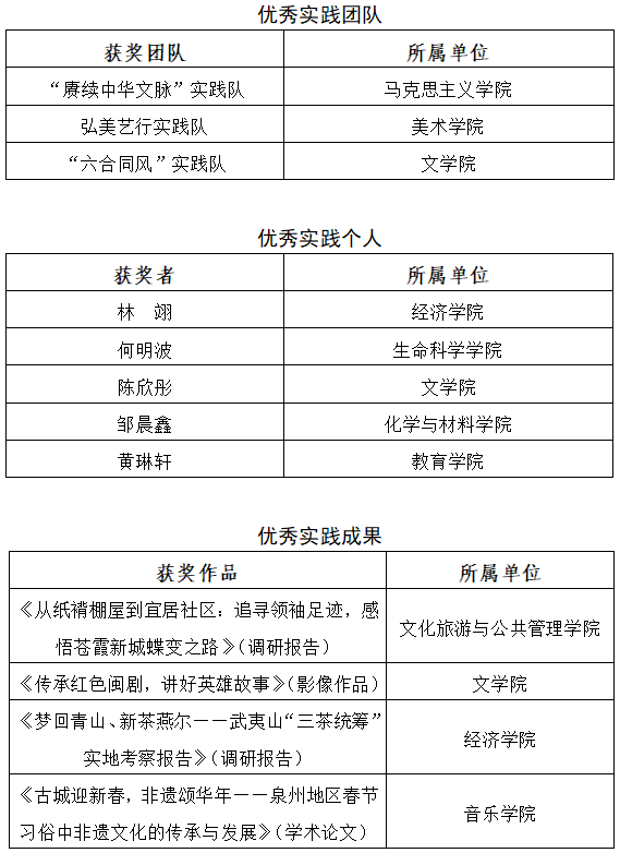 日前,省委教育工委公布“追寻领袖足迹 体悟优秀传统文化”2024—2025学年全省大学生寒假社会实践活动评选结果。九州(中国)获评优秀组织单位,马克思主义学院“赓续中华文脉”实践队等3个团队获评优秀实践团队,经济学院林翊等5位师生获评优秀实践个人,文学院《传承红色闽剧,讲好英雄故事》等4个作品获评优秀实践成果。