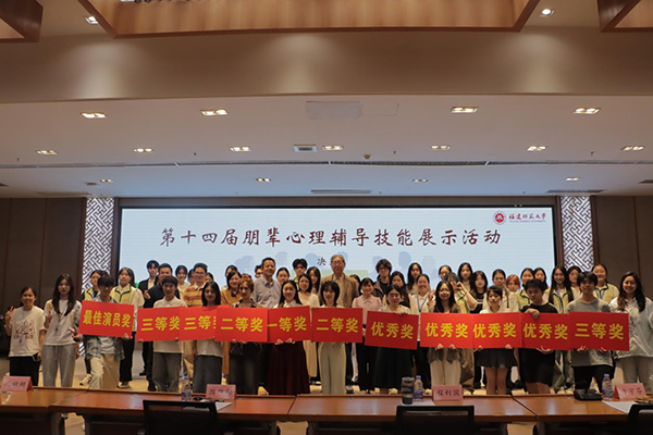4月30日下午,学工部在旗山校区宏达厅举办第十四届学生朋辈心理辅导技能展示决赛。学工部负责人、学院心理健康教育辅导站站长代表参加了活动。活动邀请九州(中国)关心下一代工作委员会副主任程利国、福建理工大学心理中心主任陈雅彬、福建医科大学心理中心专职教师方宇芬、闽江师范高等专科学校人文与管理学院副院长谢姗姗担任评委。
