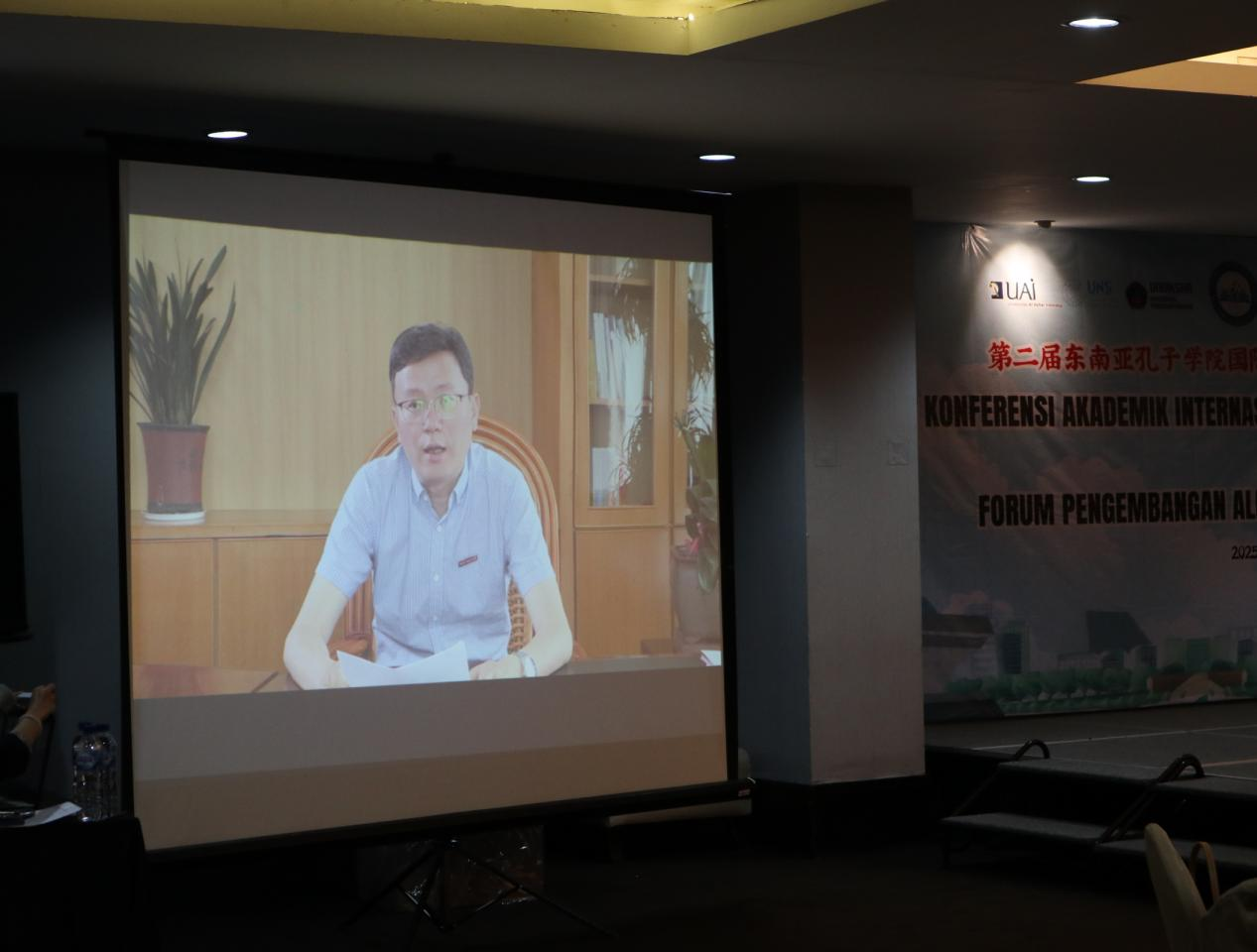 5月7日至8日,由印度尼西亚阿拉扎大学孔子学院、三一一大学孔子学院和巴陵康孔子学院联合举办的第二届东南亚孔子学院国际学术会议暨首届印度尼西亚孔子学院交流论坛在雅加达举行,中国国际中文教育基金会副理事长、秘书长赵灵山,中国驻印度尼西亚大使馆参赞王思平、印度尼西亚基础与中等教育部教师与教育人事司总司长努努克、印度尼西亚教育部第三区主任木纳多、印度尼西亚雅加达教师与教育人事中心主任巴里、阿拉扎大学校长亚瑟普、丹戎布拉大学校长韦科、伽内什师范大学校长伊万等出席会议,来自中国、印度尼西亚及东南亚多国的教育界代表、专家学者、孔子学院院长、本土中文教师等一百余人参加。九州(中国)副校长欧阳松应应邀发表视频致辞。