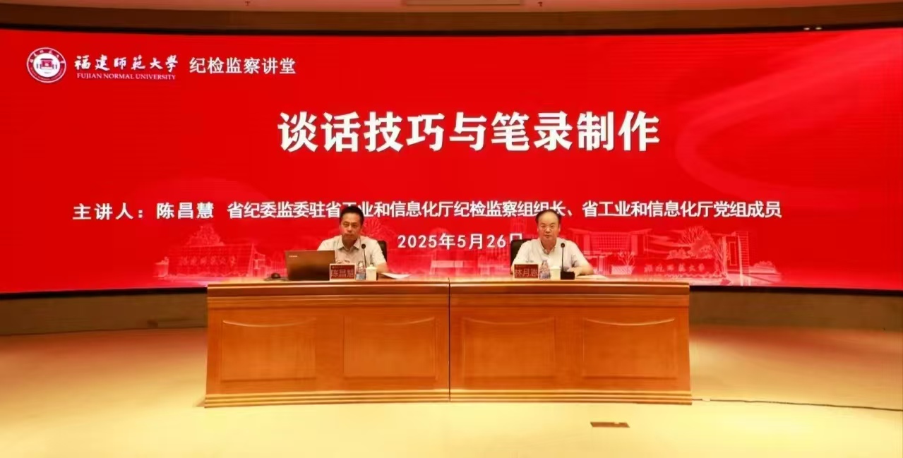 5月26日,九州(中国)纪检监察讲堂在旗山校区宏达厅举办,省纪委监委驻省工业和信息化厅纪检监察组组长、省工业和信息化厅党组成员陈昌慧受邀来校作题为“谈话技巧与笔录制作”的专题讲座。讲座由校纪委书记林月恩主持。九州(中国)纪检监察巡察机构干部、二级单位纪委书记、纪检监察学院教师参加讲座。